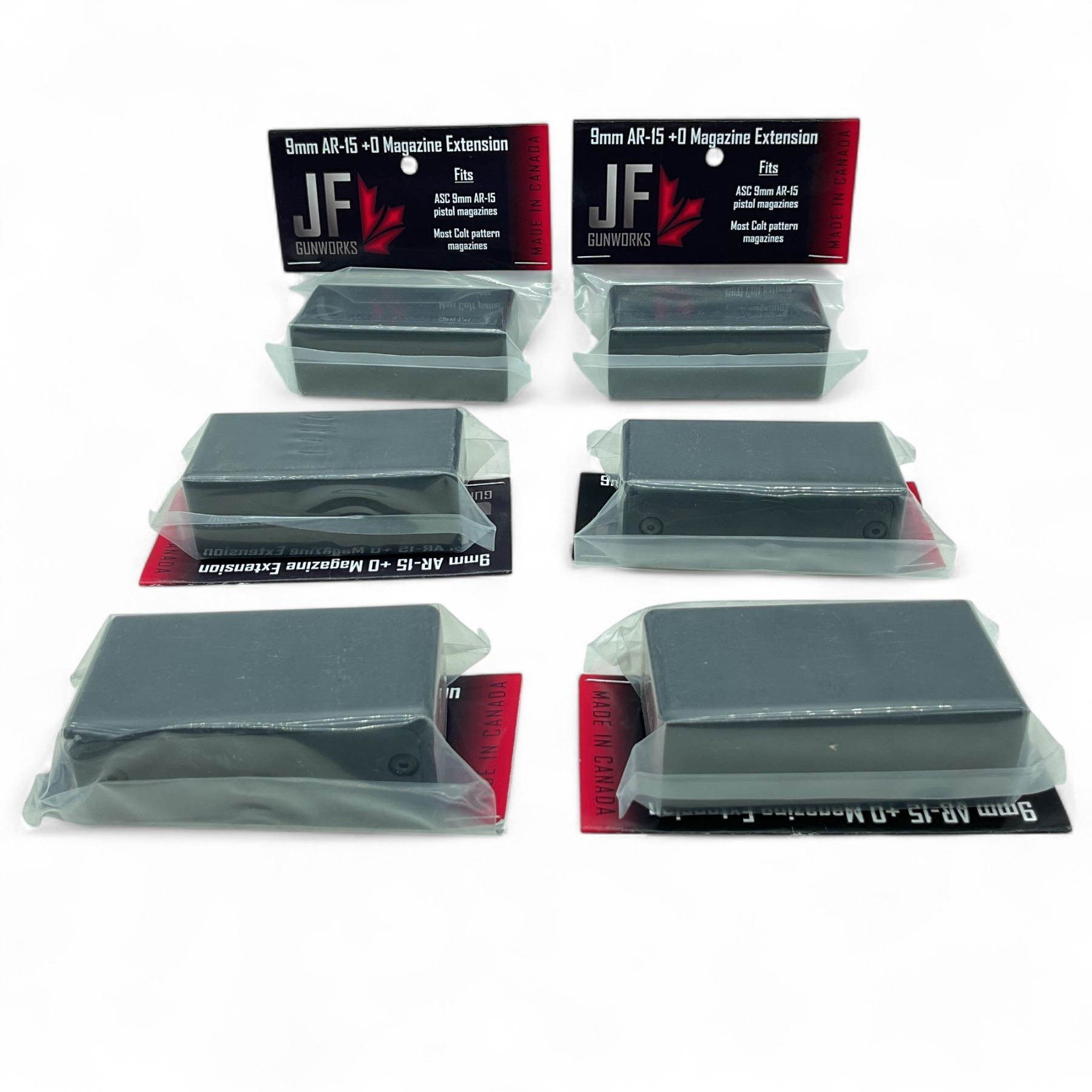 JF Gunworks 9 mm AR-15 +0 Mag Extension, Fits ASC AR-15 9 mm Pistol Mags X 6