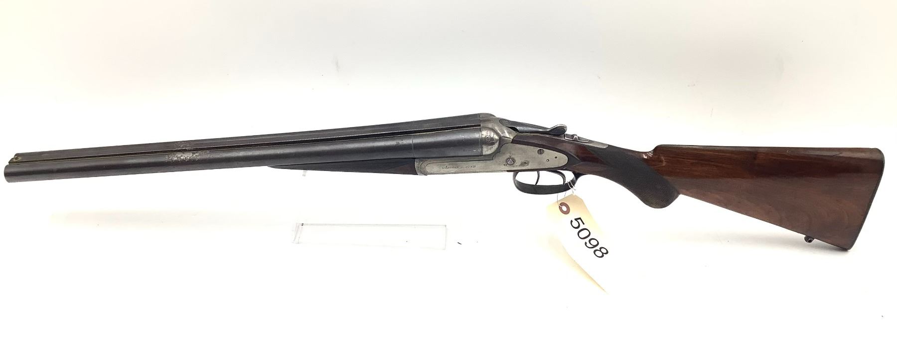 Janssen Sons & Co Side By Side 12Ga Shotgun 20" Barrels Wood Stock. Bead sight, includes sling mounts. Plastic butt plate, stock does have some small cracks. This is a non-restricted firearm.