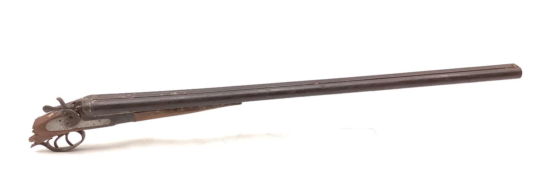 Janssen & Sons SXS 12 Ga Shotgun Parts Gun 30" Barrels. Rear stock is broken at receiver, one hammer is missing. Other parts appear to be missing as well. Metal finish is rusty and scratched. This is a non-restricted firearm.