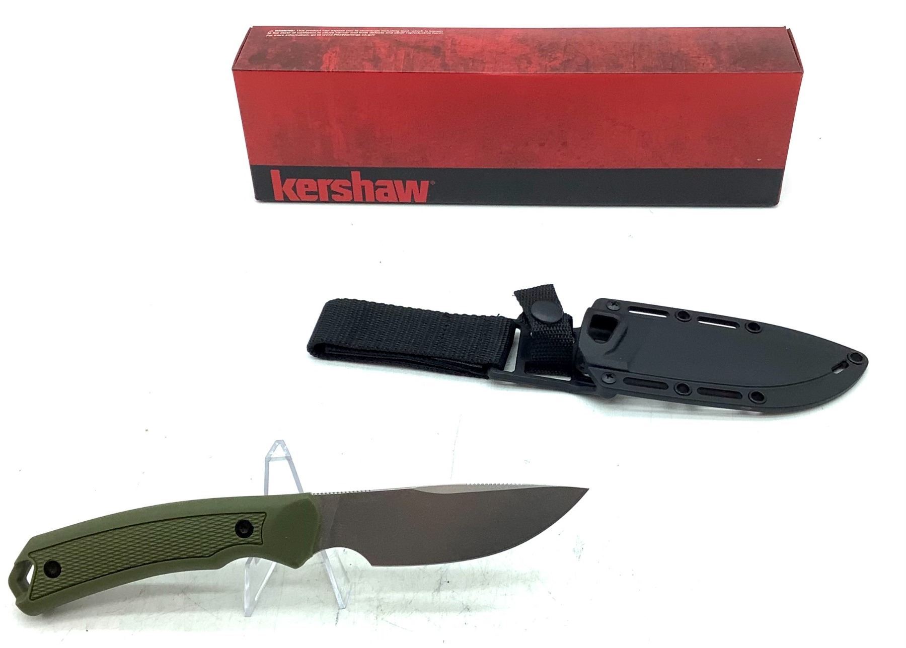Kershaw Deschutes Skinner Fixed 3 1/4  Blade Knife with Green Handle and Belt Sheath, New
