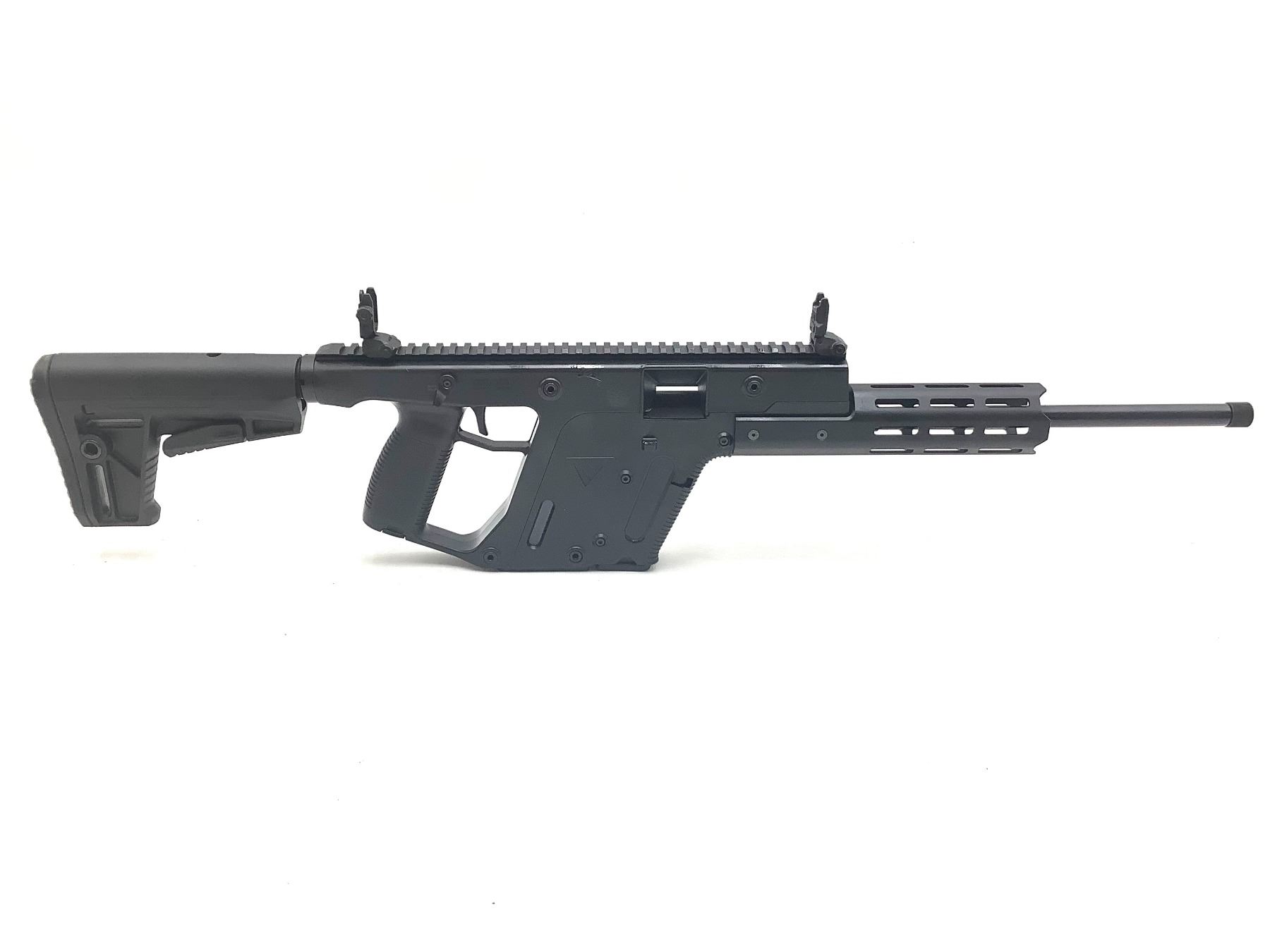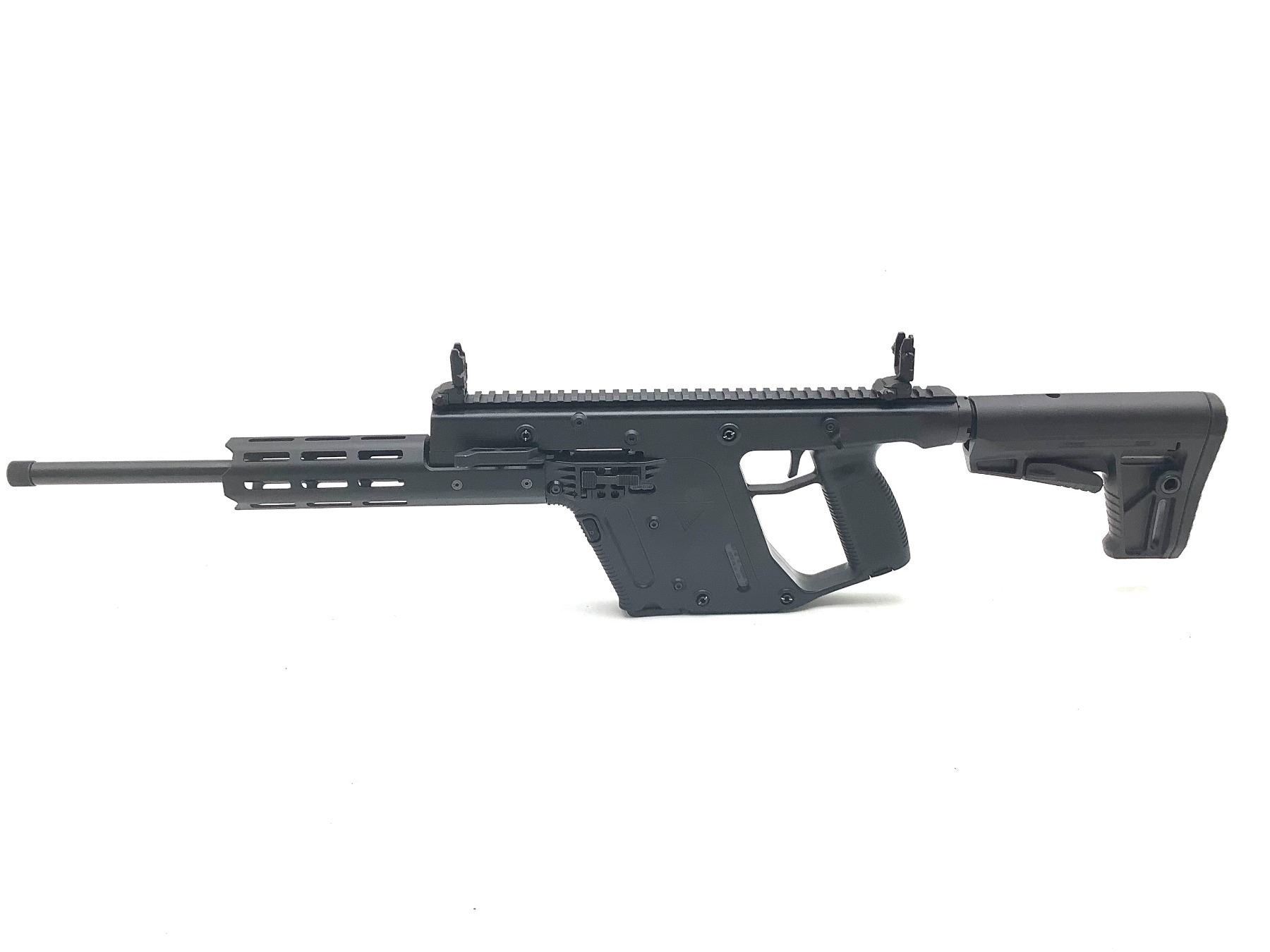 Kriss Vector Semi Auto 22 LR Carbine Black Synthetic 16" Barrel. Flip up sights, comes with one detachable magazine. Adjustable stock, includes black plastic case. This is a non-restricted firearm.