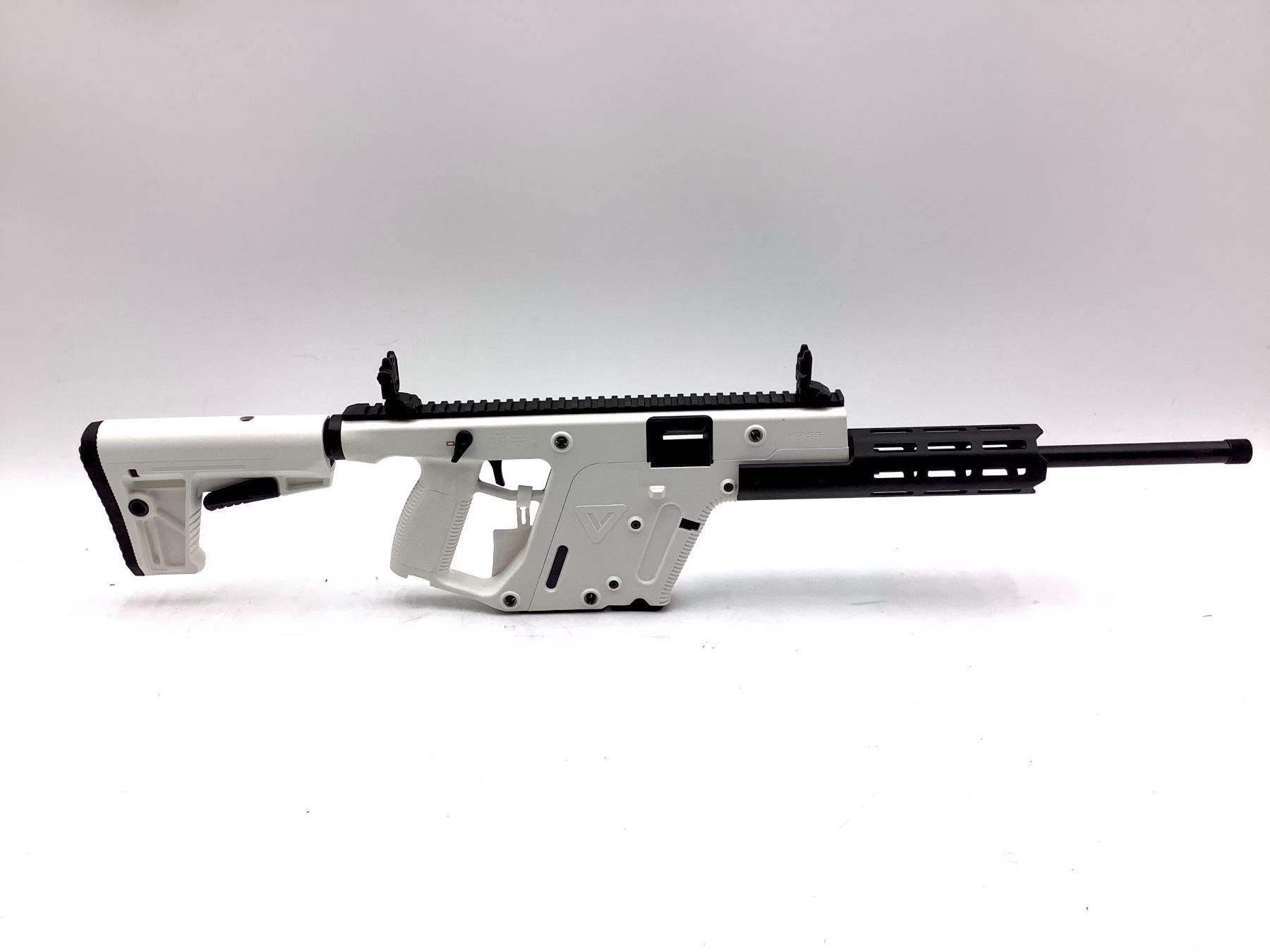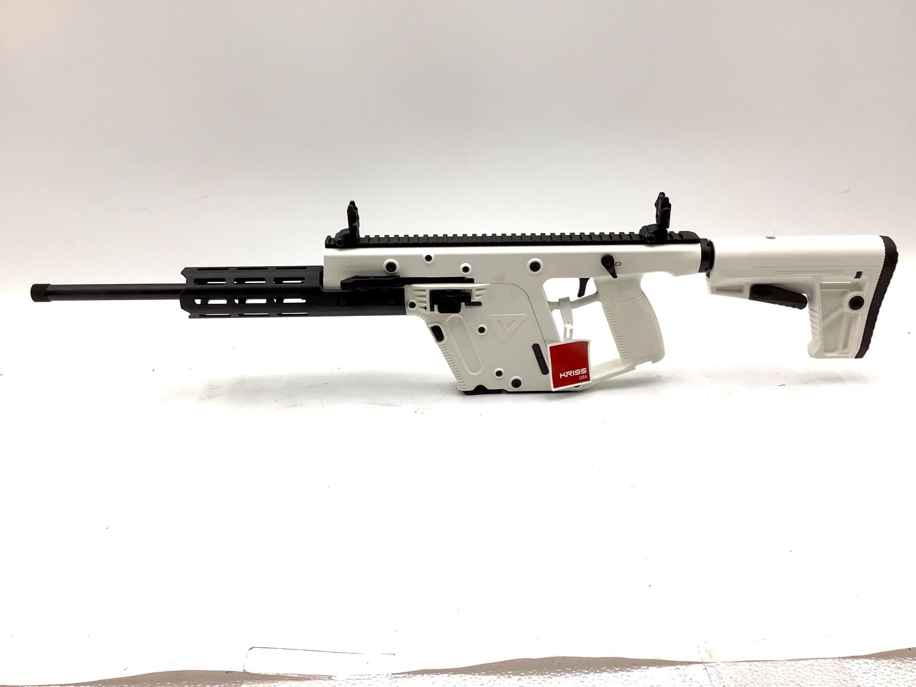 A new in case Kriss Vector, Semi Auto 22 LR Carbine, Artic white, comes with one magazine, flip up sights. This is a non restricted firearm.