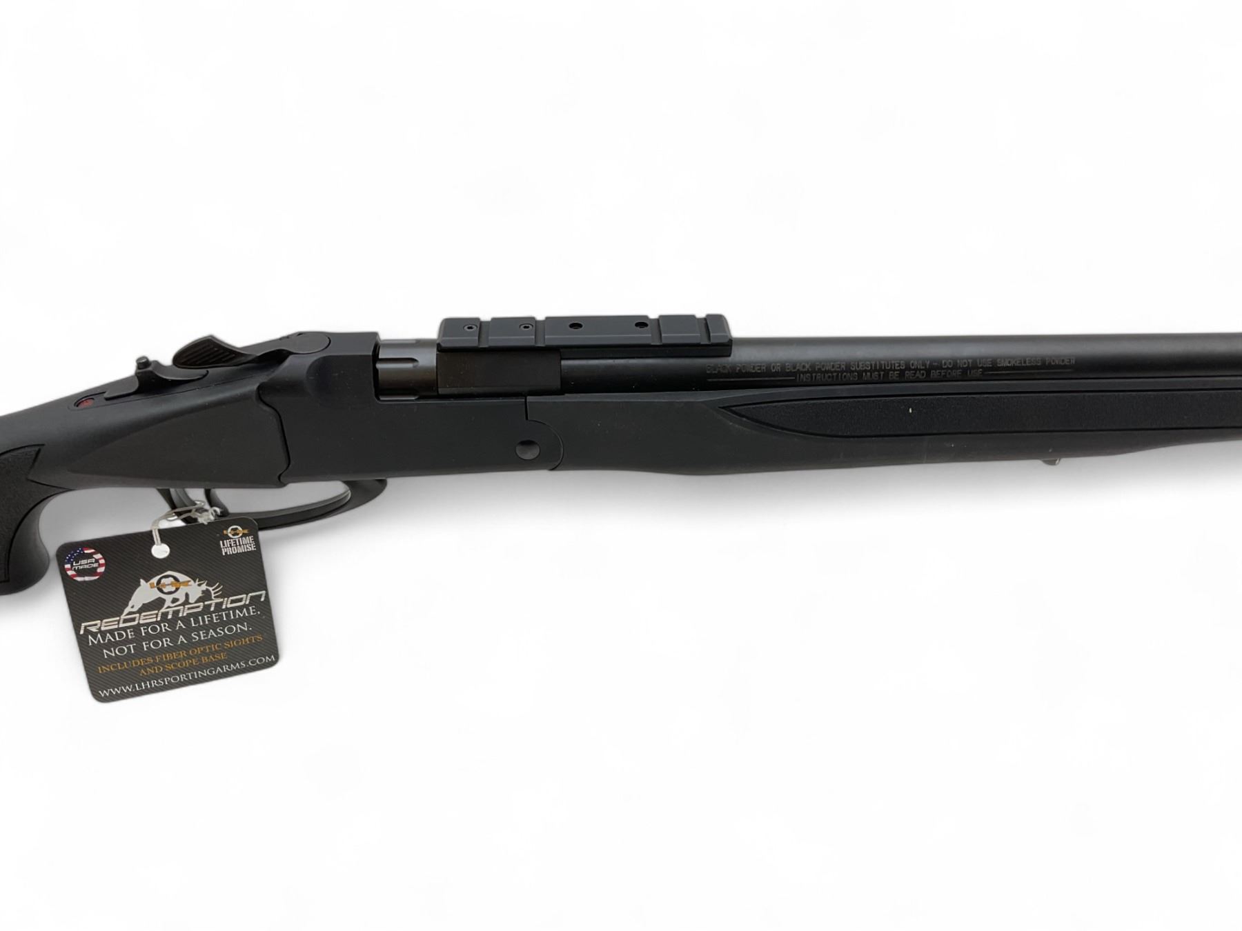 LHR Redemption Single Shot .50 Cal Black Powder Rifle 24" Barrel Black Synthetic Stock. One piece rail mounted on barrel; includes ram rod. This is a non-restricted firearm.
