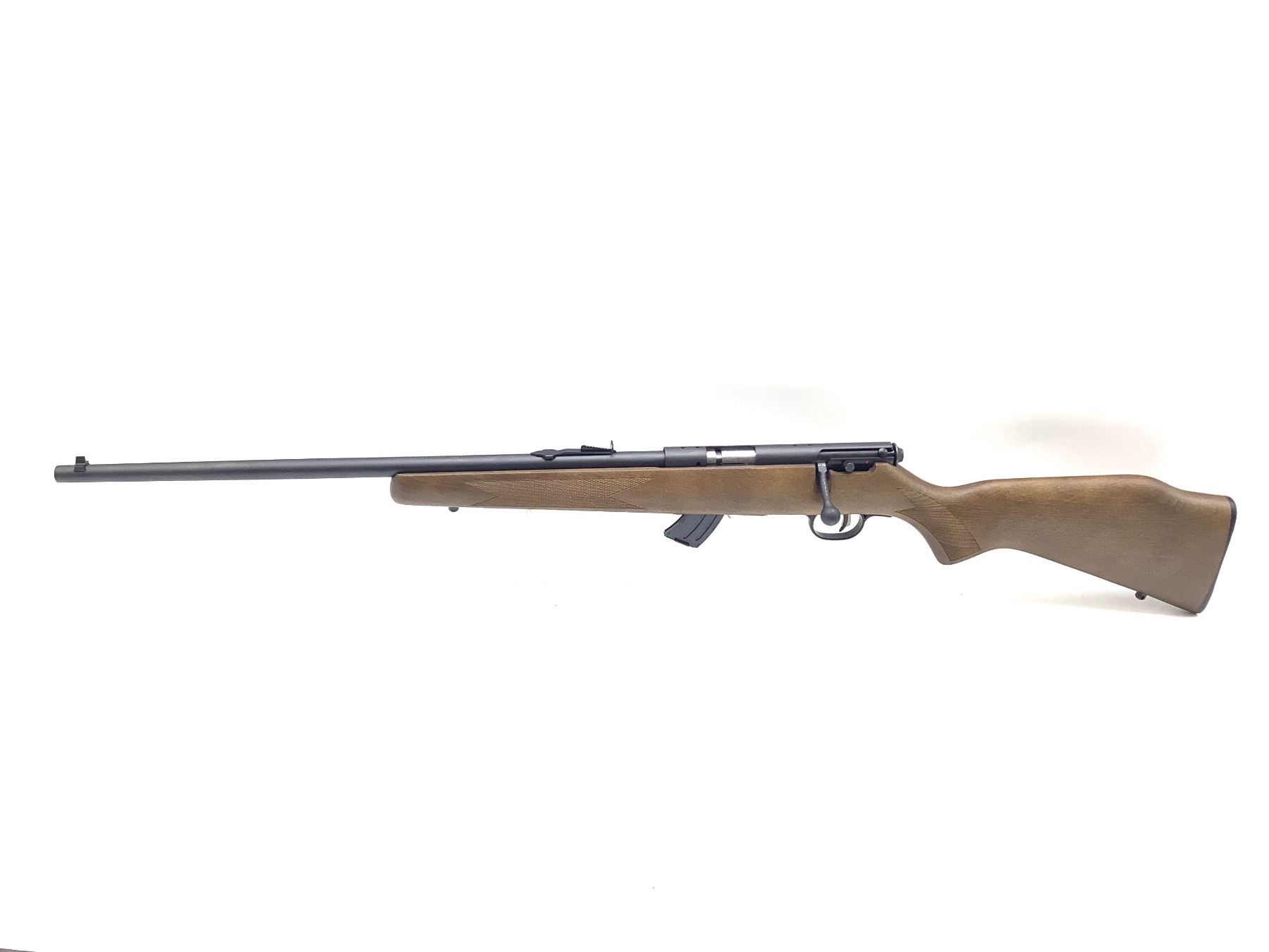 Lakefield Mark II 22 LR Bolt Action Rifle 21" Barrel Left Hand Wood Stock, New. Receiver drilled and tapped, detachable magazine. Factory open sights, adjustable trigger. This is a non-restricted firearm.