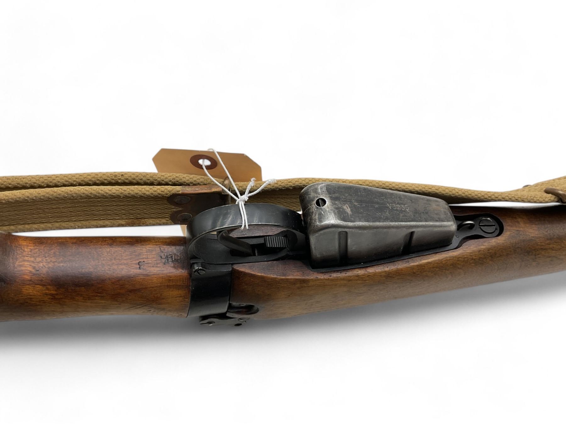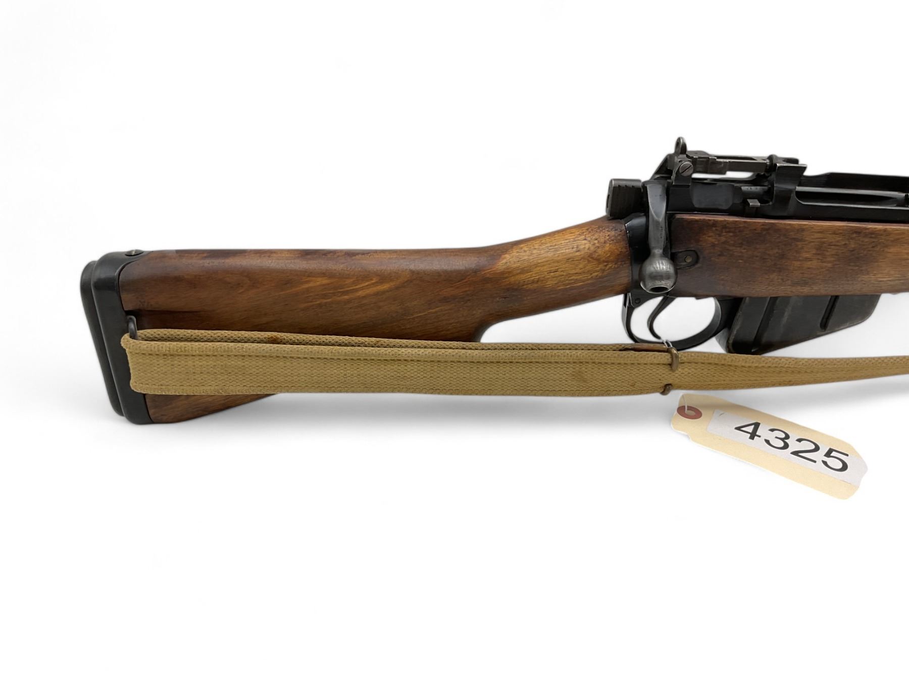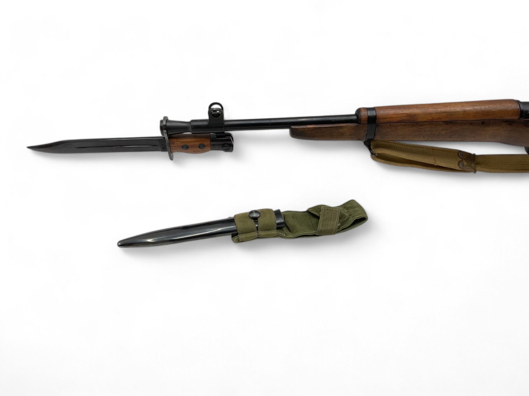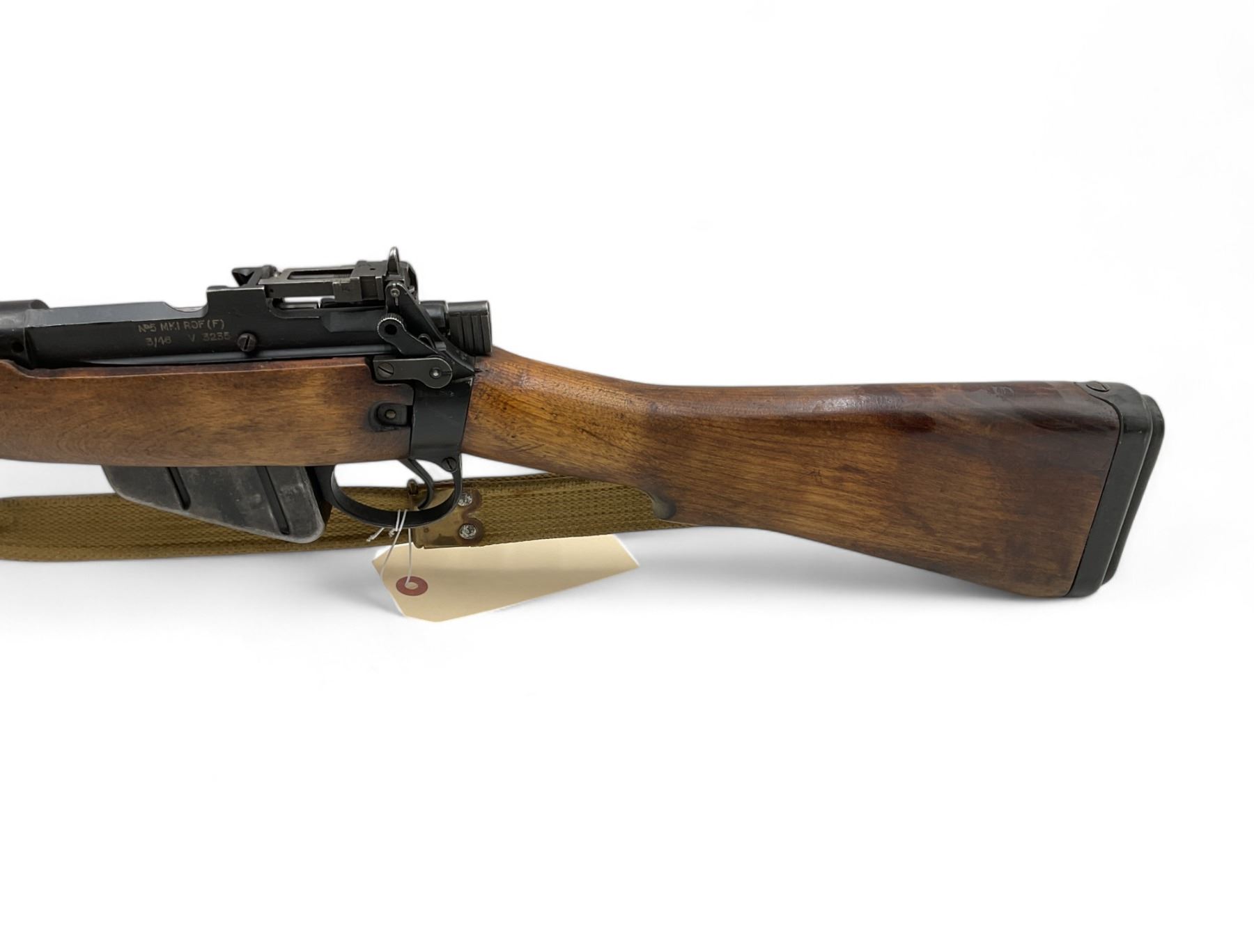 A 1946 Royal Ordnance Factory Fazakerley (Liverpool) Lee-Enfield No. 5 Mk. I Jungle Carbine bolt-action service carbine. 18.75" barrel with strong rifling, chambered in 303 British. Wood stock, includes bayonet and scabbard and original sling. Includes one detachable magazine.