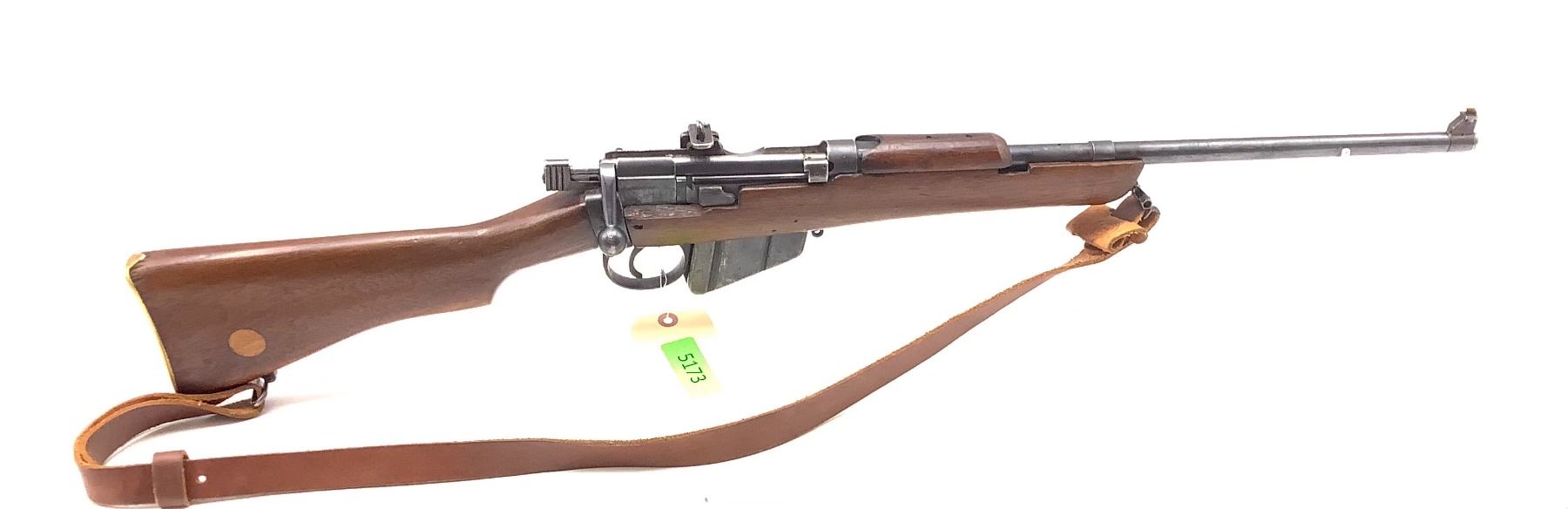 Lee Enfield Sporterized No1 MKIII* Bolt Action Rifle 303 British 19" Barrel Wood Stock. Made in 1919. Front sight present, rear sight missing. Peep sight installed on receiver. Detachable magazine. This is a non-restricted firearm.