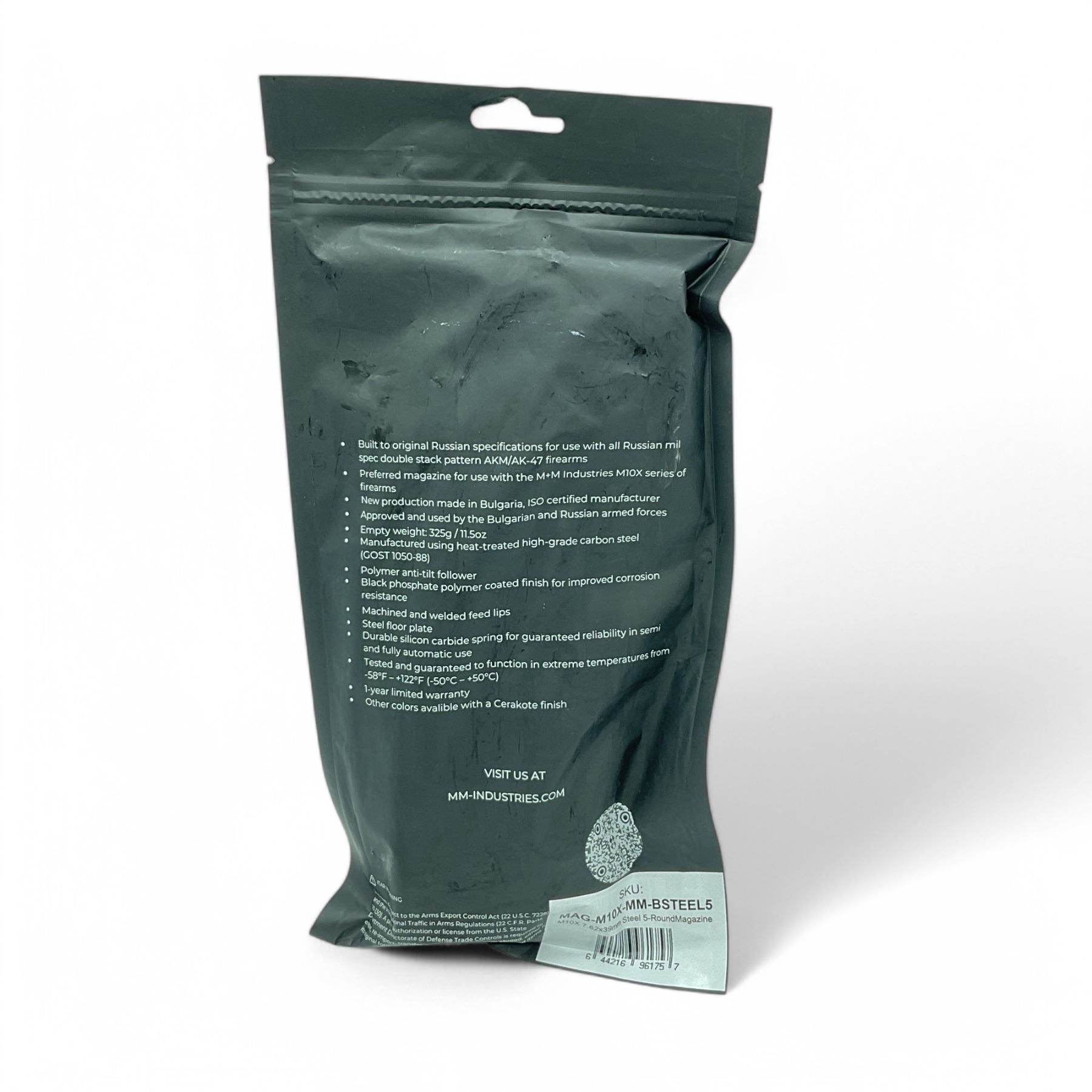 M+M Industries 7.62x39mm, 5 Round AKM/ AK-47 Steel Magazine, New