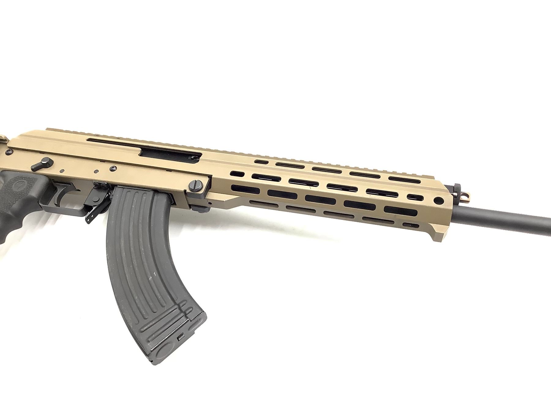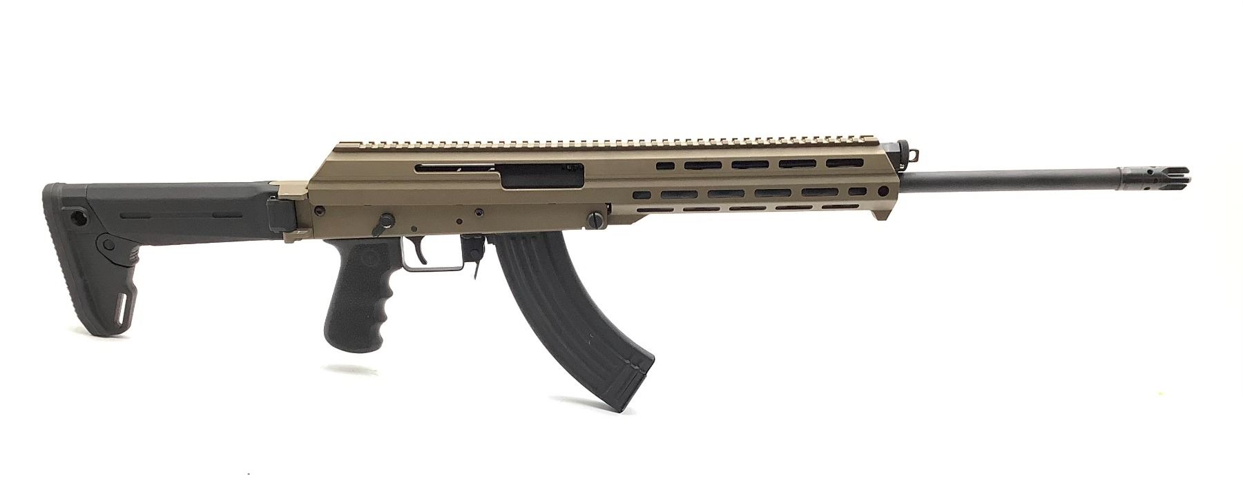 M+M Industries M10X-Z DMR 7.62x39 Semi Auto Rifle 18.6" Barrel FDE. Detachable magazine, folding adjustable stock. Threaded barrel with brake. This is a non-restricted firearm.