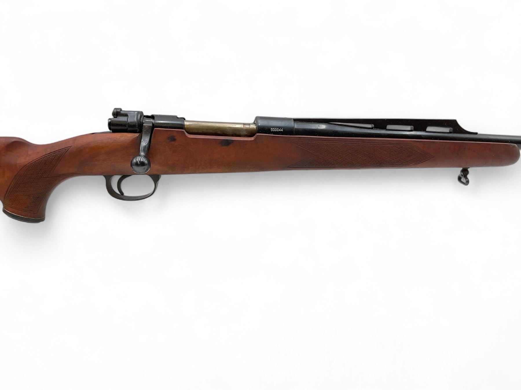 M98 Bolt Action Rifle 21" Barrel 7X64 Wood Stock. Internal magazine with base plate. Fiber optic front sight; missing rear sight. Receiver drilled and tapped. This is a non-restricted firearm.