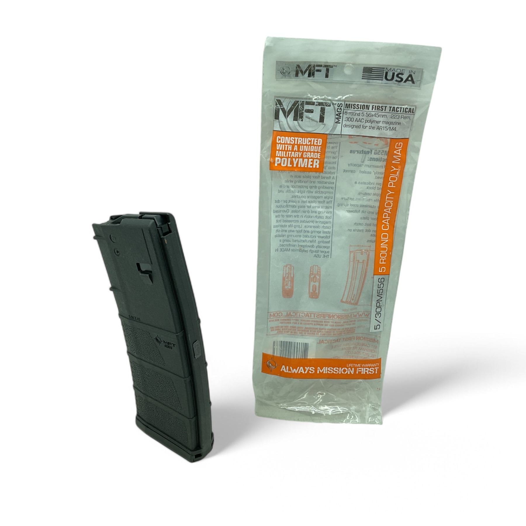 MFT Polymer 5.56 Nato/ 223 Rem/ 300 BLK 5 Round Magazine