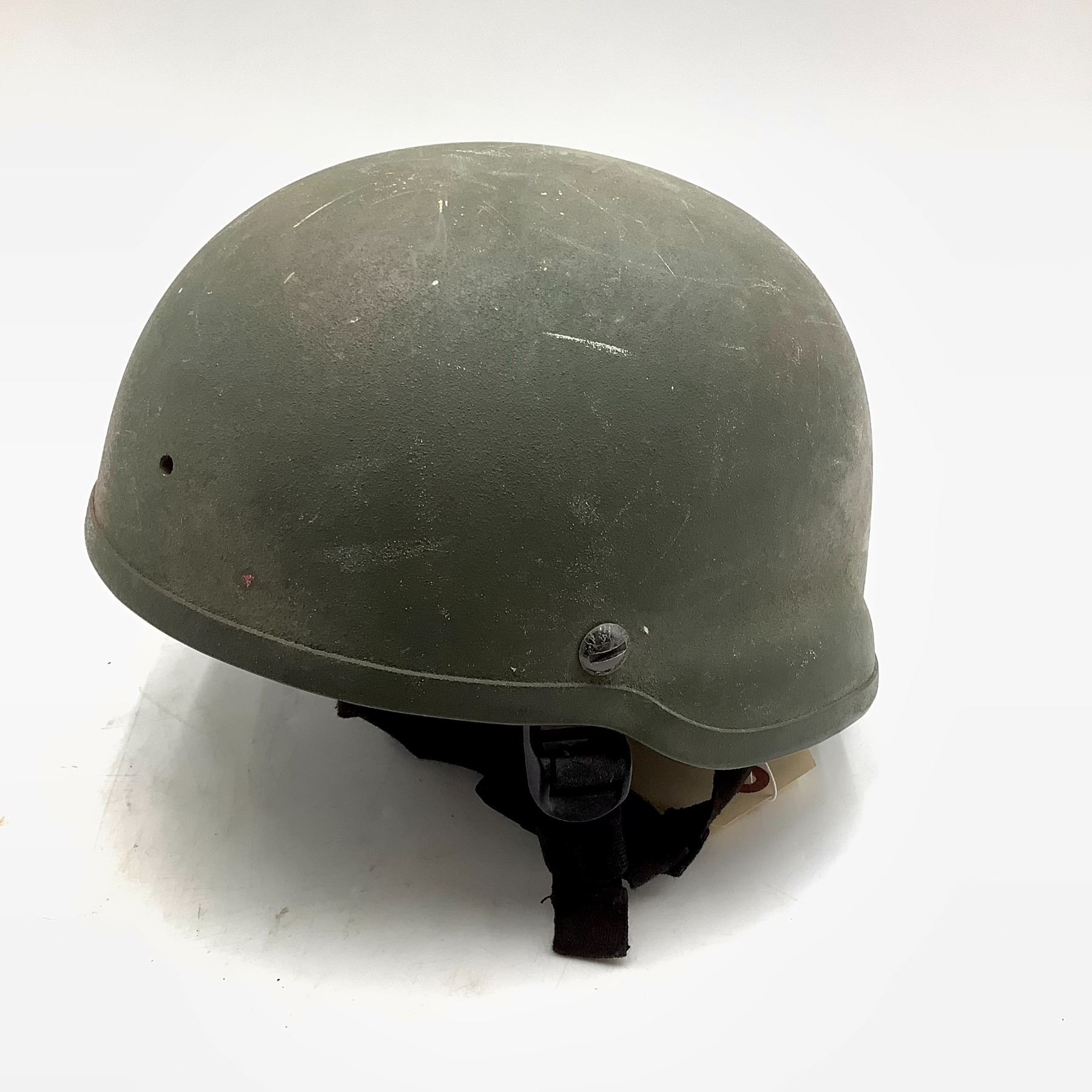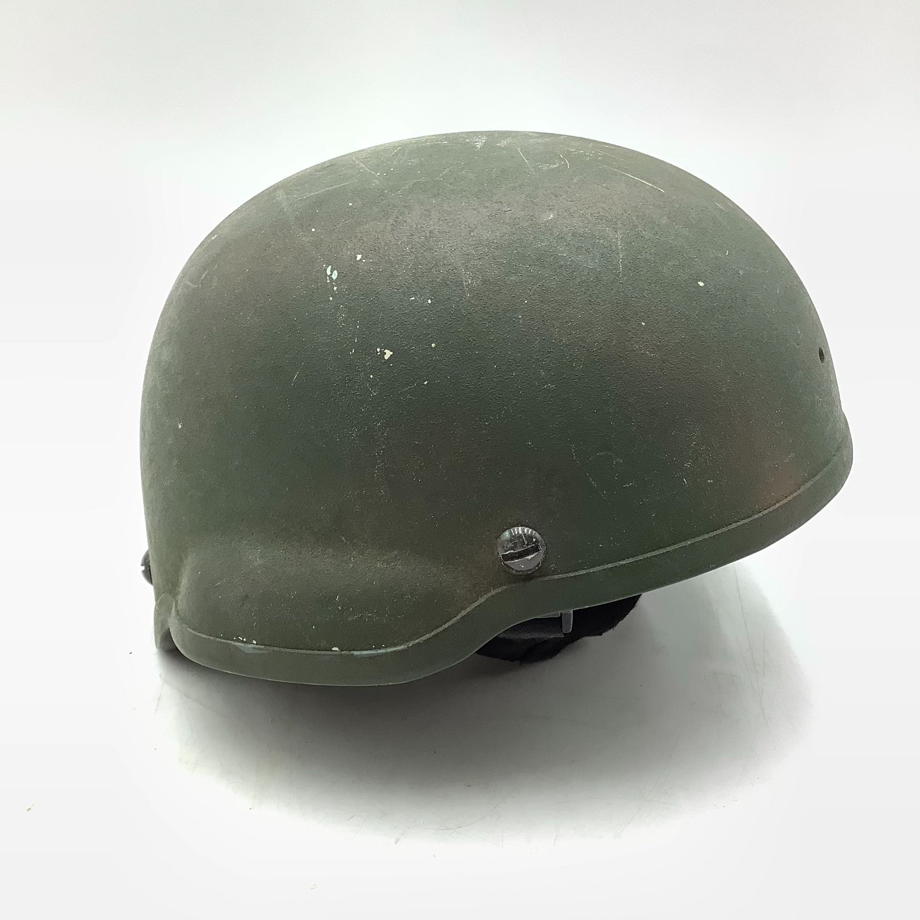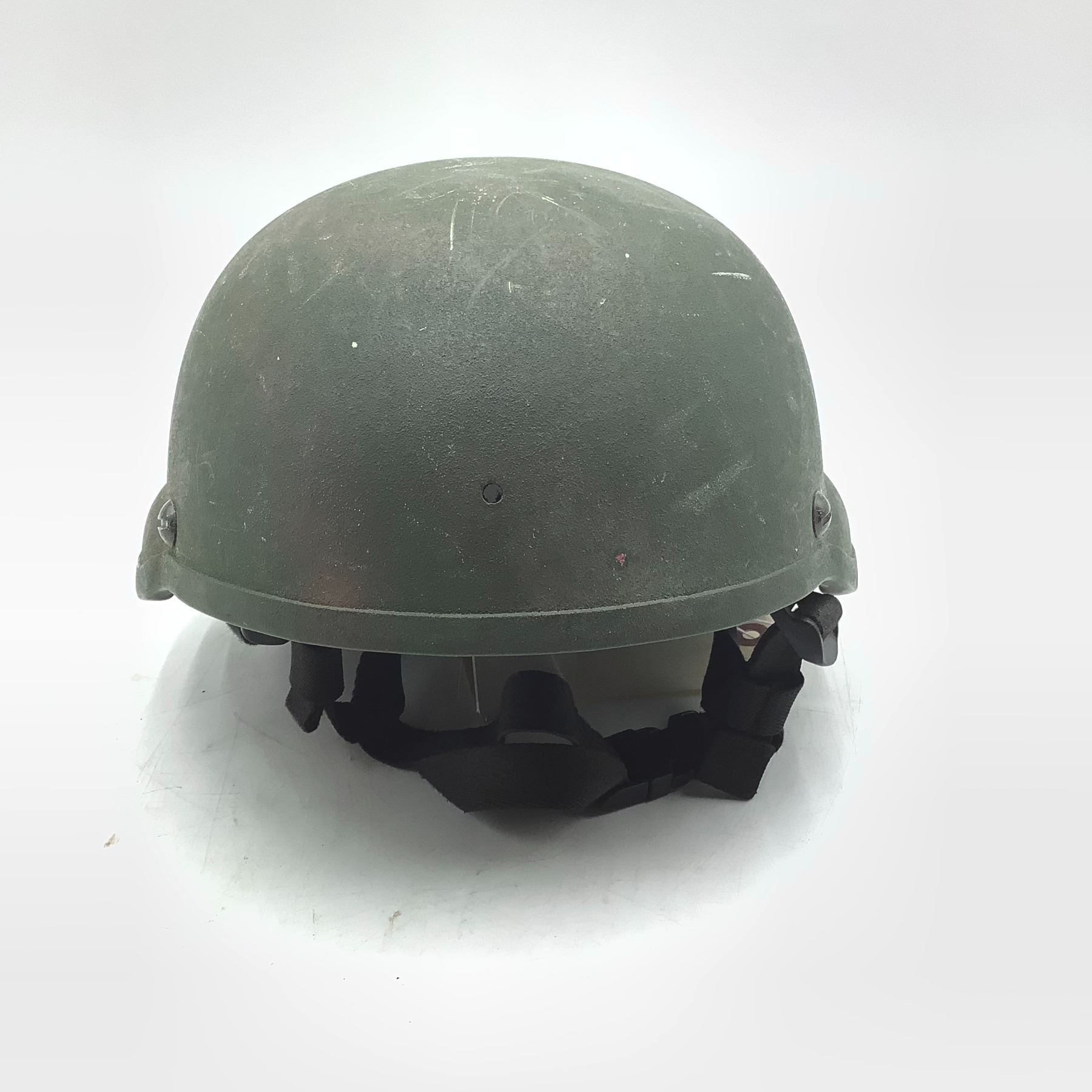 MSA Ballistic Helmet Size Large Green. Straps present but no internal padding.