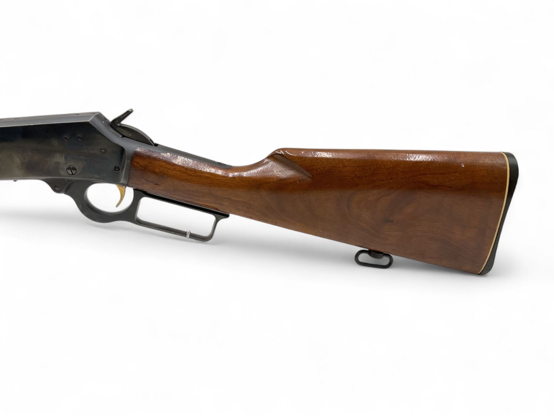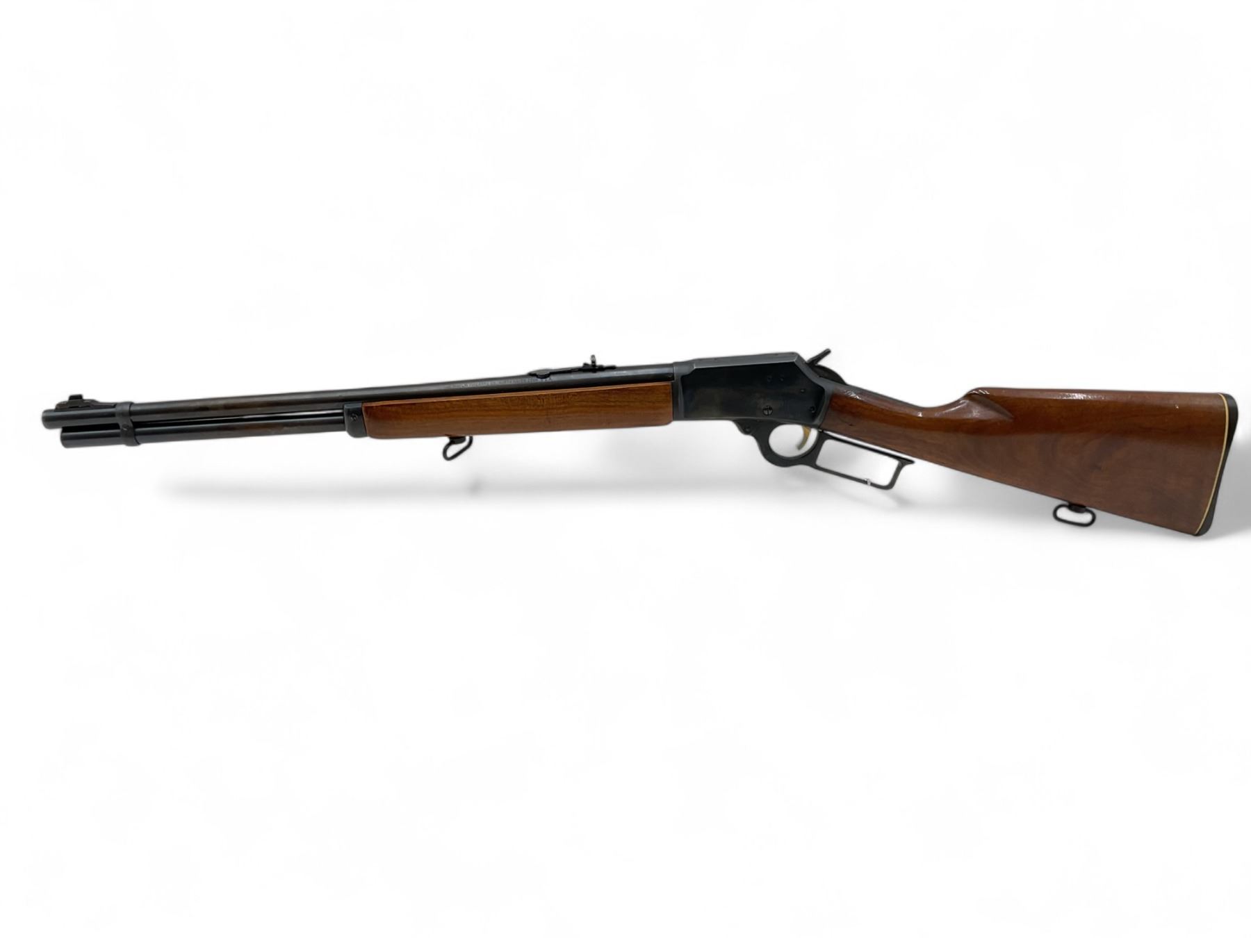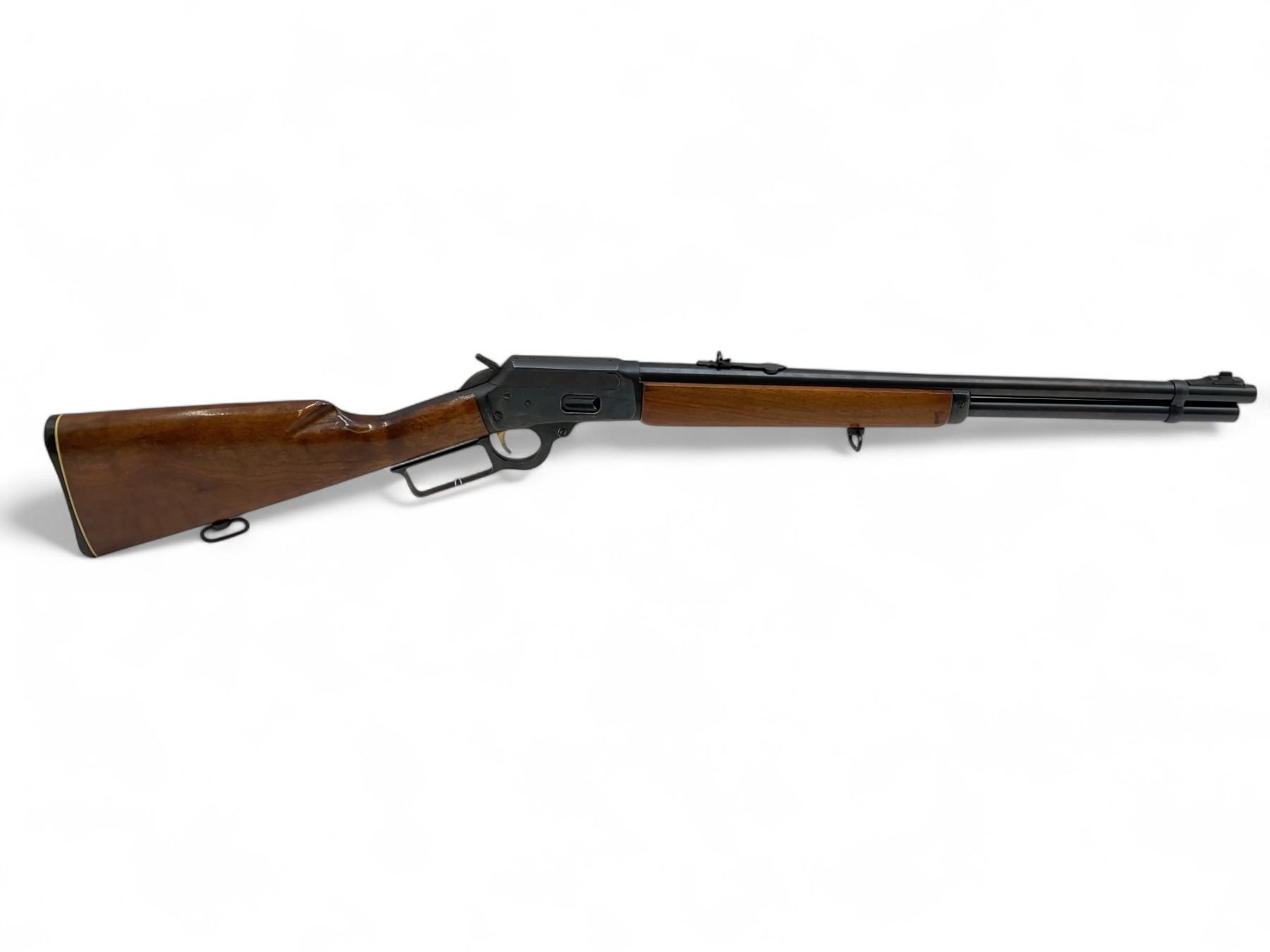 Marlin 1894 Lever Action Rifle .44 Magnum 20" Barrel Wood Stock. Tubular magazine, factory open sights. Serial number 25058133. This is a non-restricted firearm.