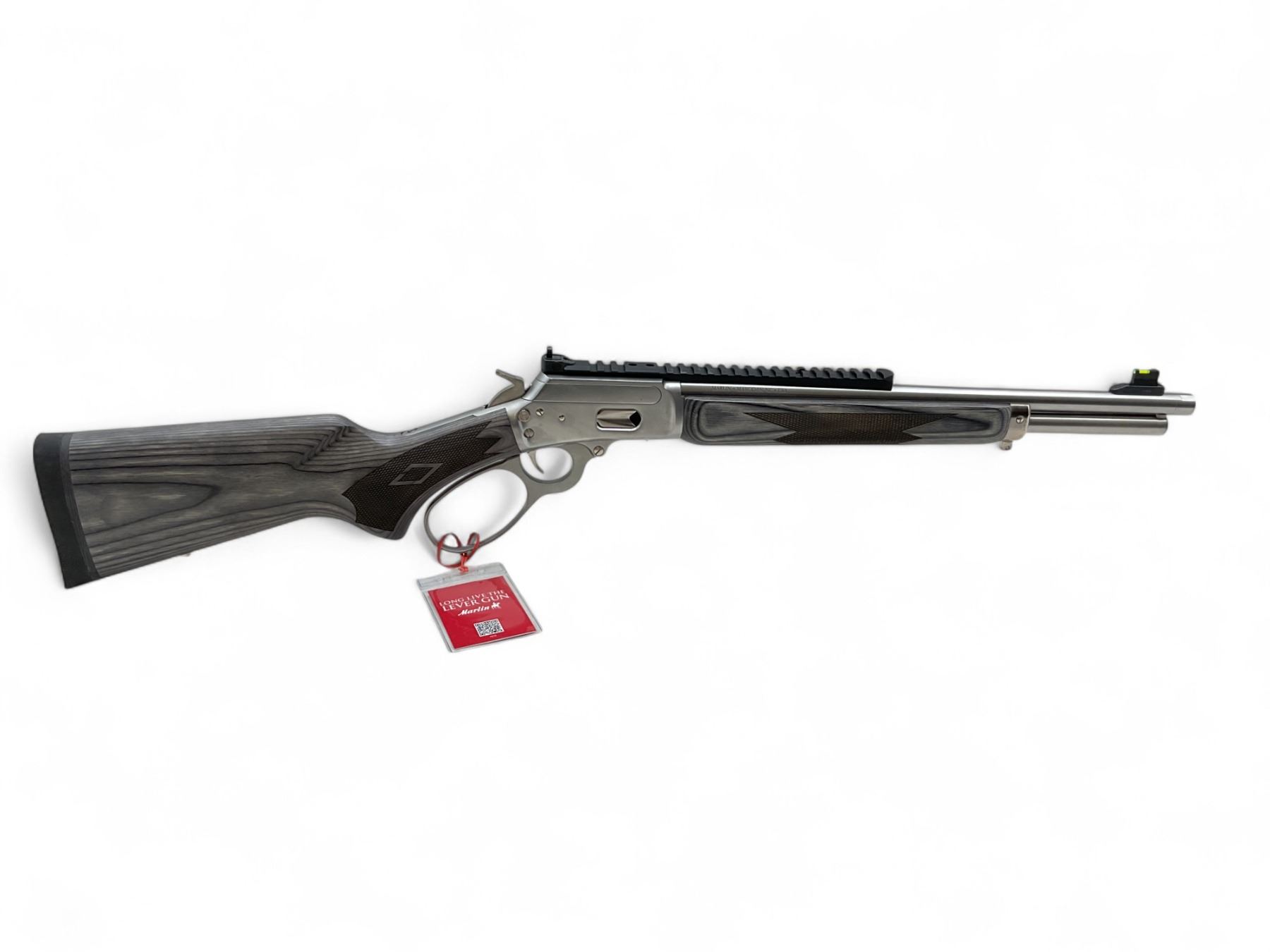 Marlin 1894 SBL Lever Action Rifle .44 Magnum 16.1" Threaded Barrel Stainless With Gray Laminated Stock, New. Tubular magazine. Fiber optic front sight; adjustable peep rear sight. Receiver drilled and tapped with one piece rail installed. This is a non-restricted firearm.