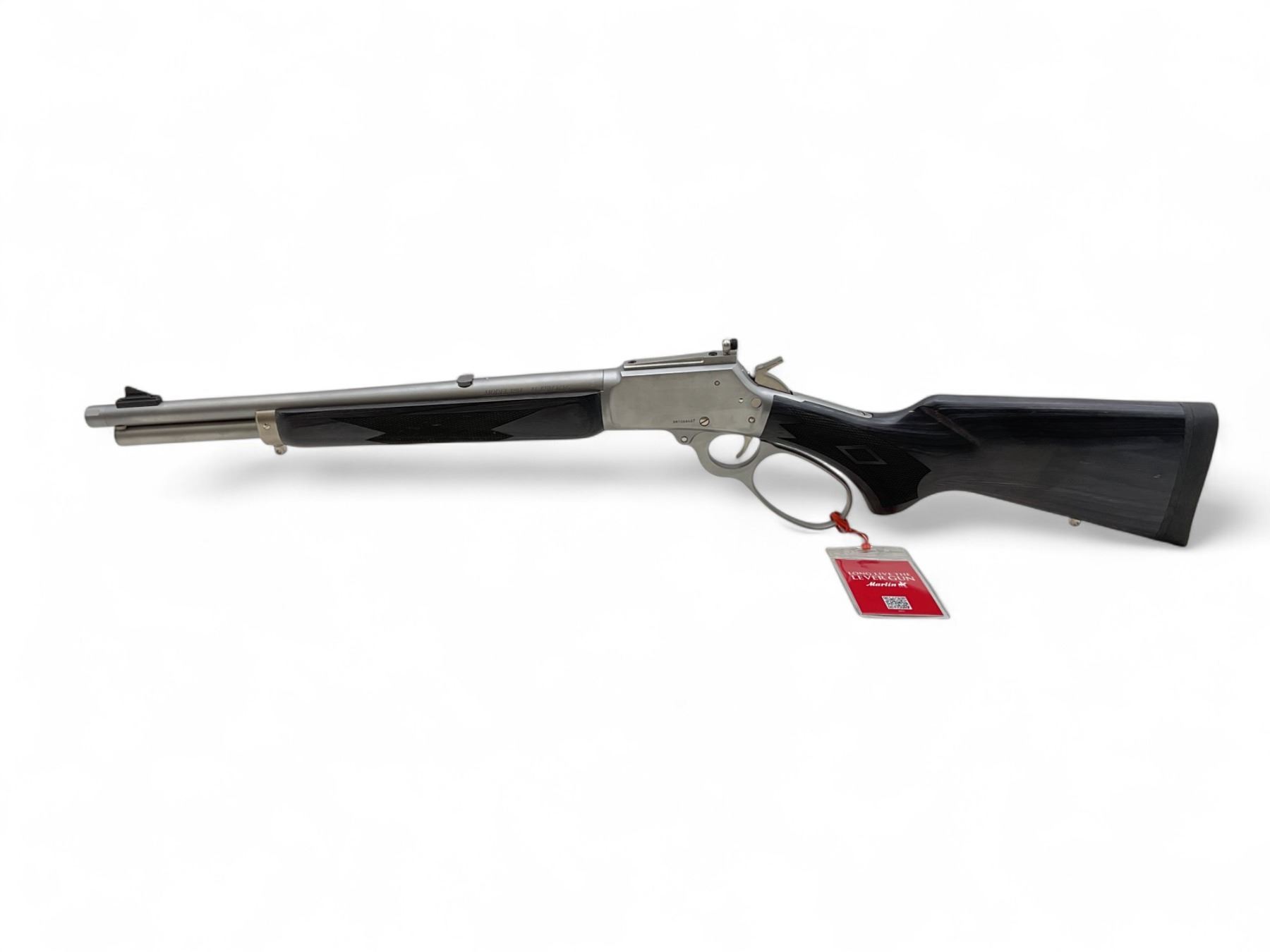 Marlin 1894 Stainless Trapper Lever Action Rifle .44 Magnum 16.1" Threaded Barrel Black Laminate Stock, New. Skinner sights, tubular magazine. Large loop lever; rubber butt pad. This is a non-restricted firearm.