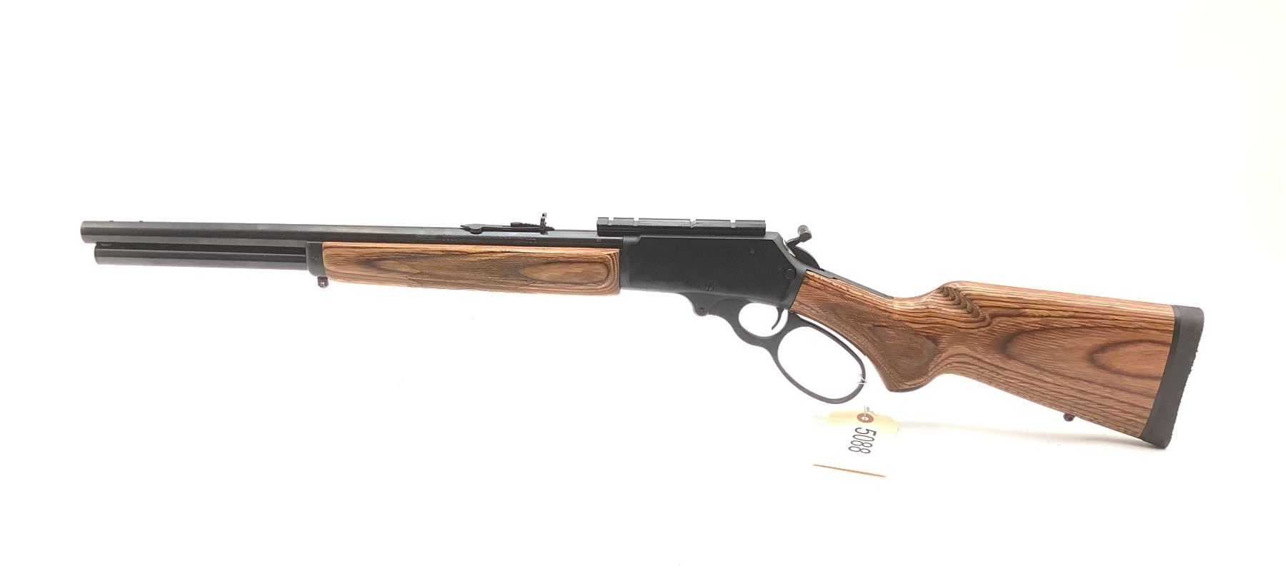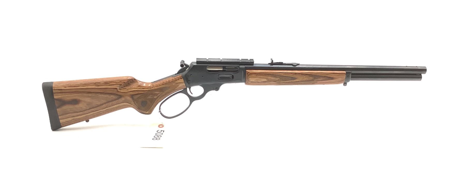 Marlin 1895GBL Lever Action Rifle 45/70 18" Barrel Laminate Stock. Receiver drilled and tapped with rail mounted. Adjustable rear sight; no front sight present. Rubber butt pad, sling mounts and hammer extension included. This is a non-restricted firearm.