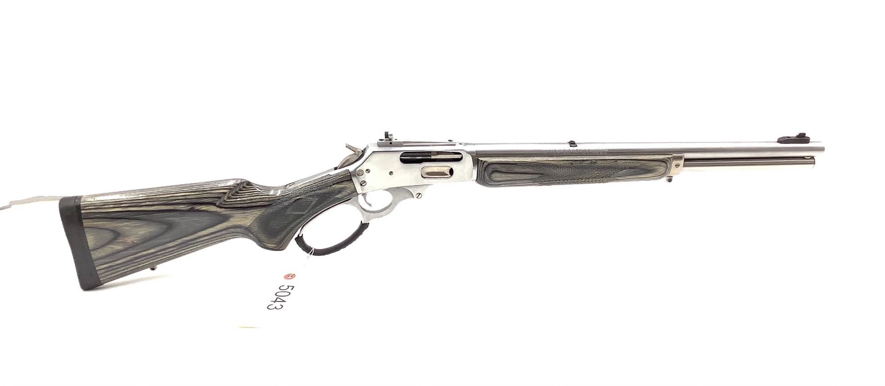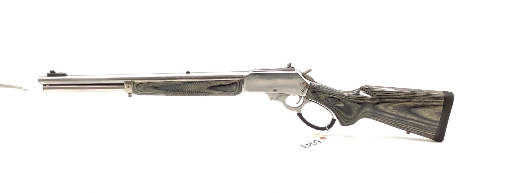 Marlin 1895SBL 45/70 Lever Action Rifle Stainless 18" Barrel Laminate Stock. Skinner rear sight, blade front sight; tubular magazine. Rubber butt pad, large loop lever, includes sling mounts. This is a non-restricted firearm.
