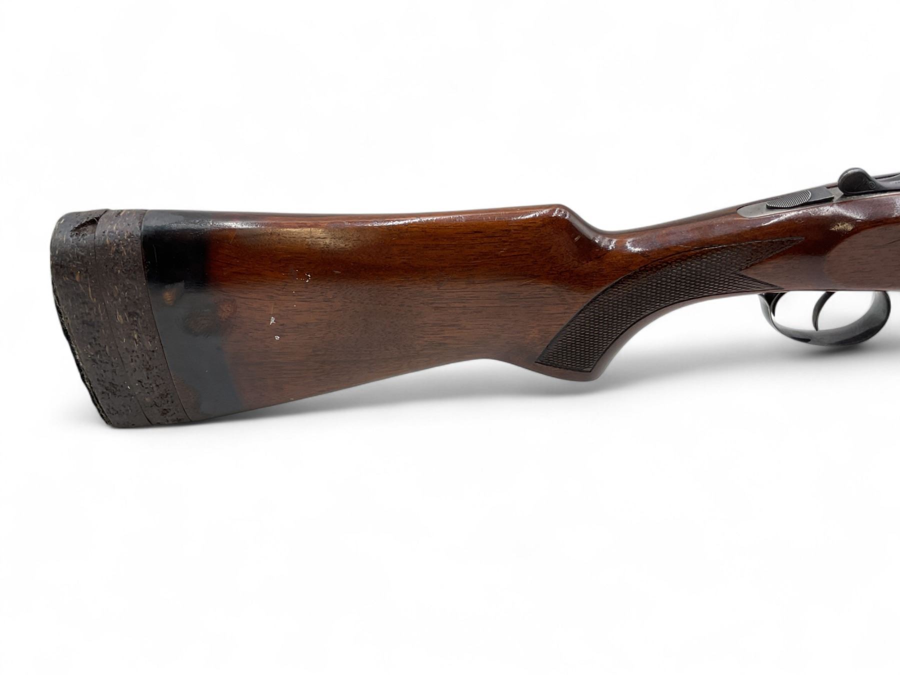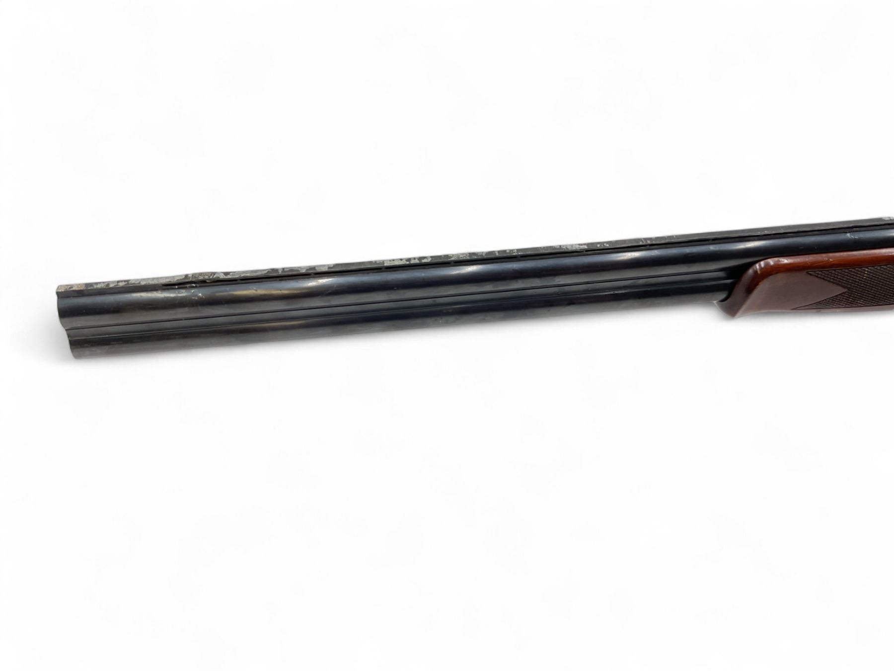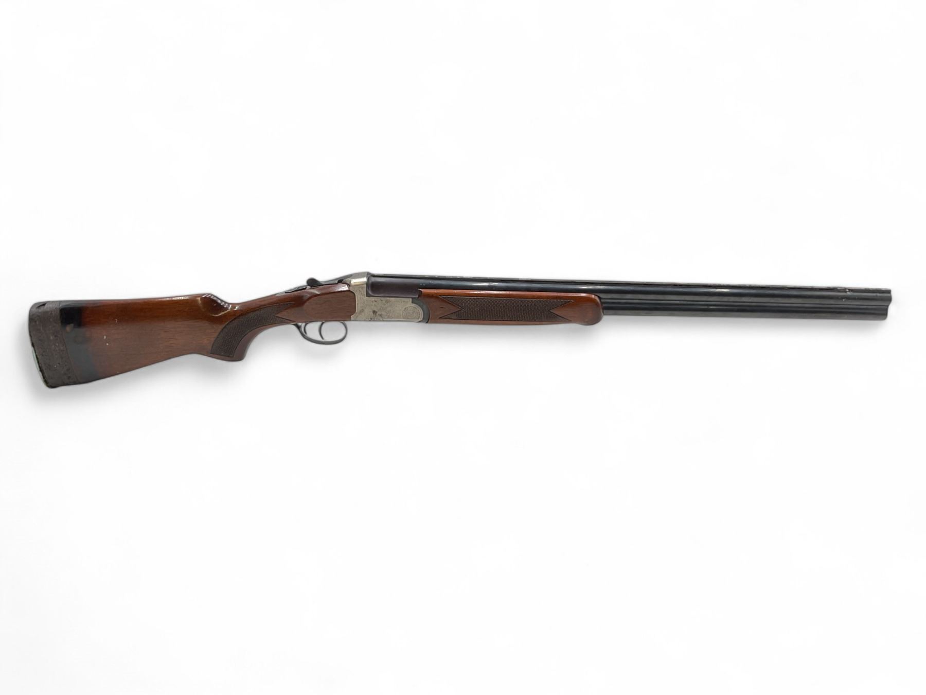 Maroccini Over Under Shotgun 12Ga 2.75" Chambers 28" Barrels Wood Stock. Vent rib is bulged near front and missing bead sight. Fixed chokes; double triggers. Rear stock has been extended and has custom butt pad. This is a non-restricted firearm.