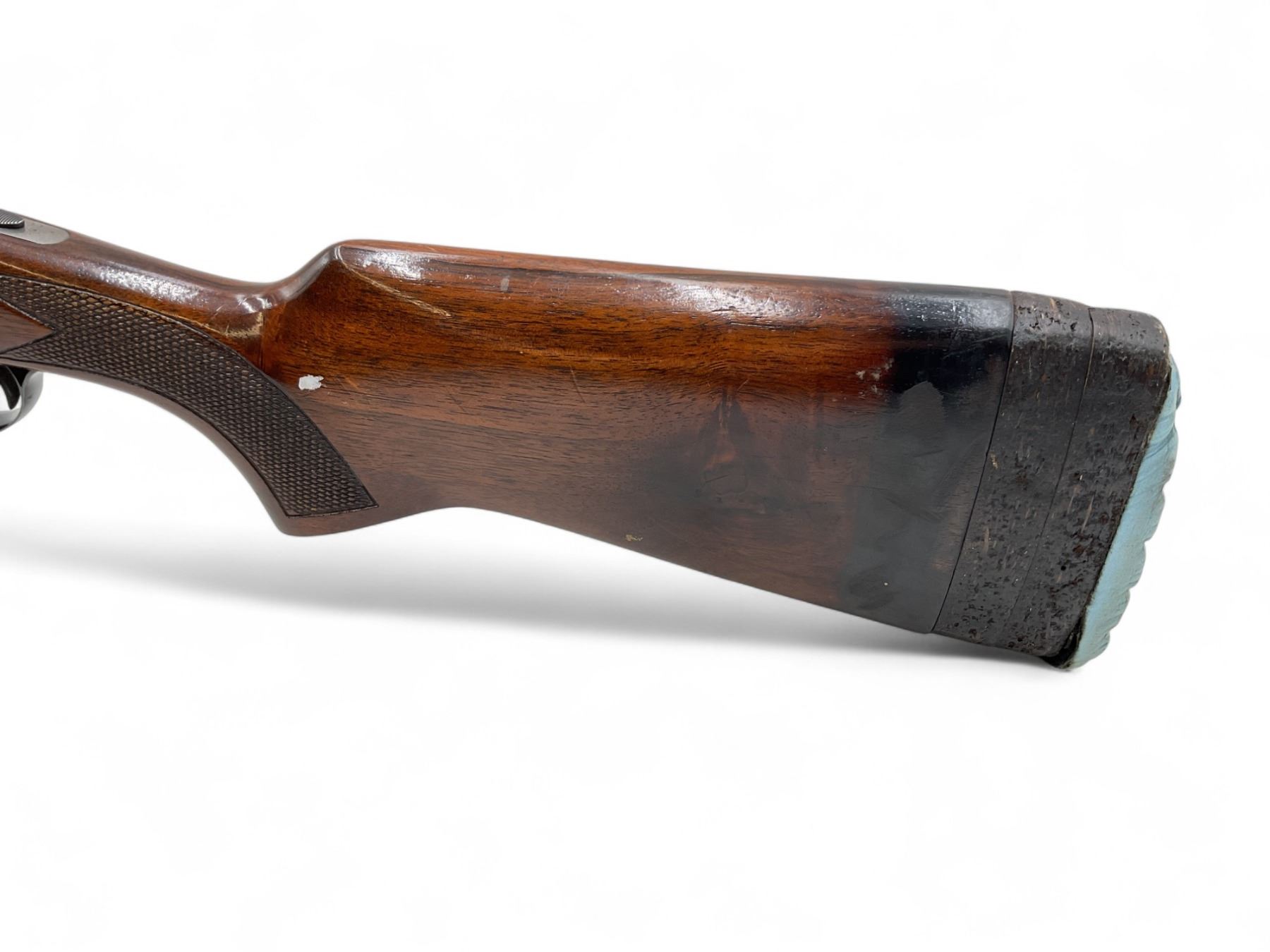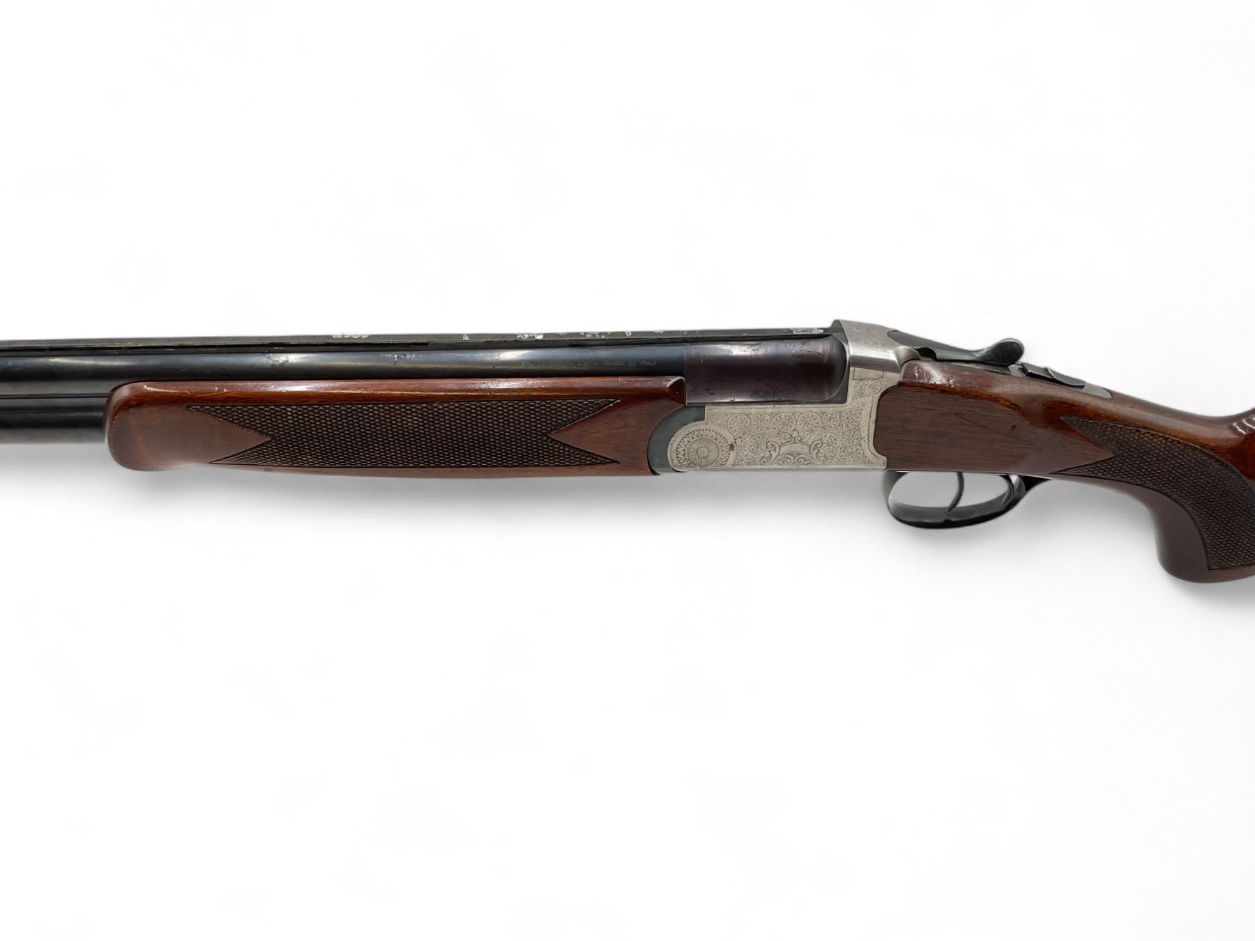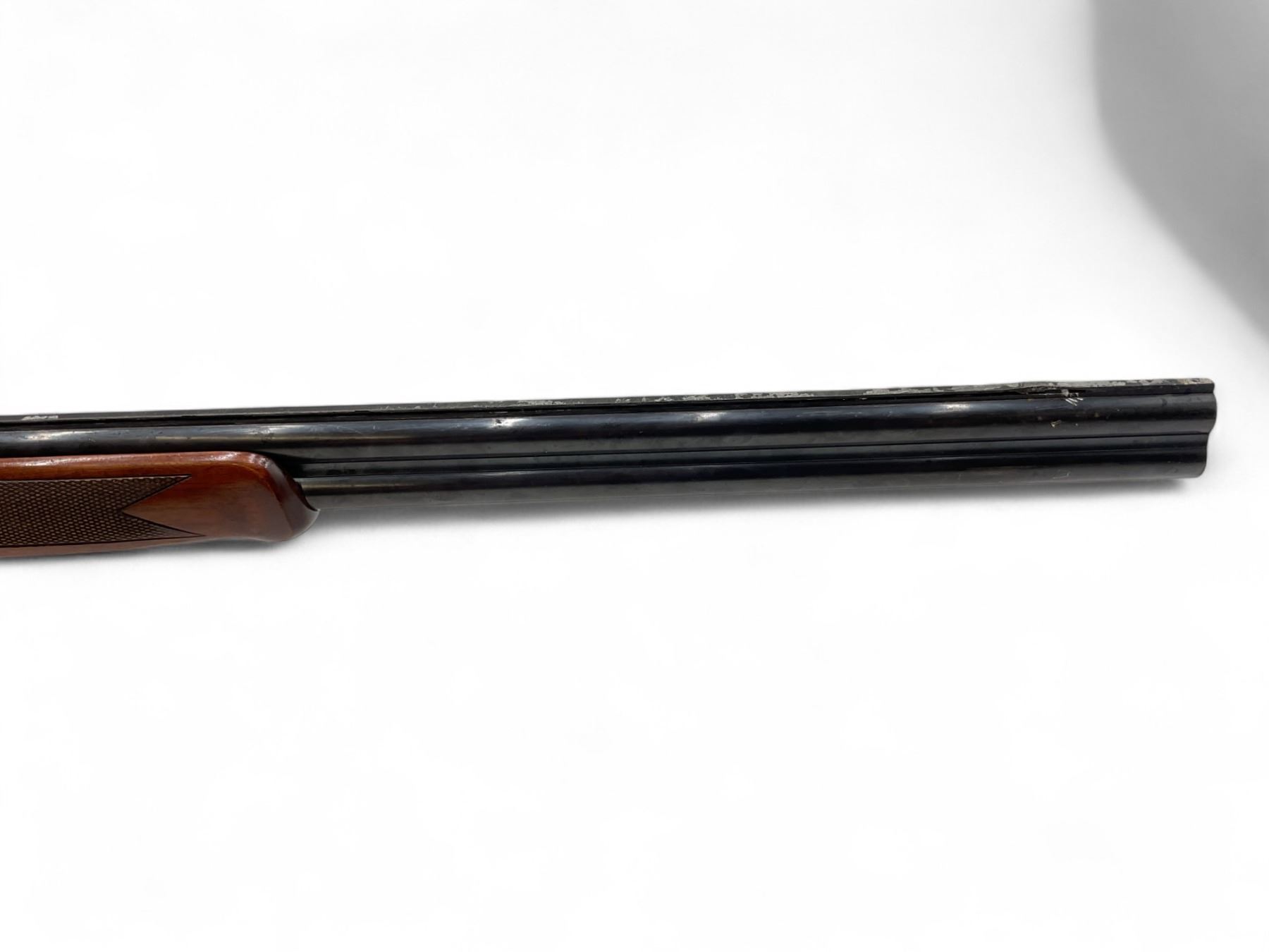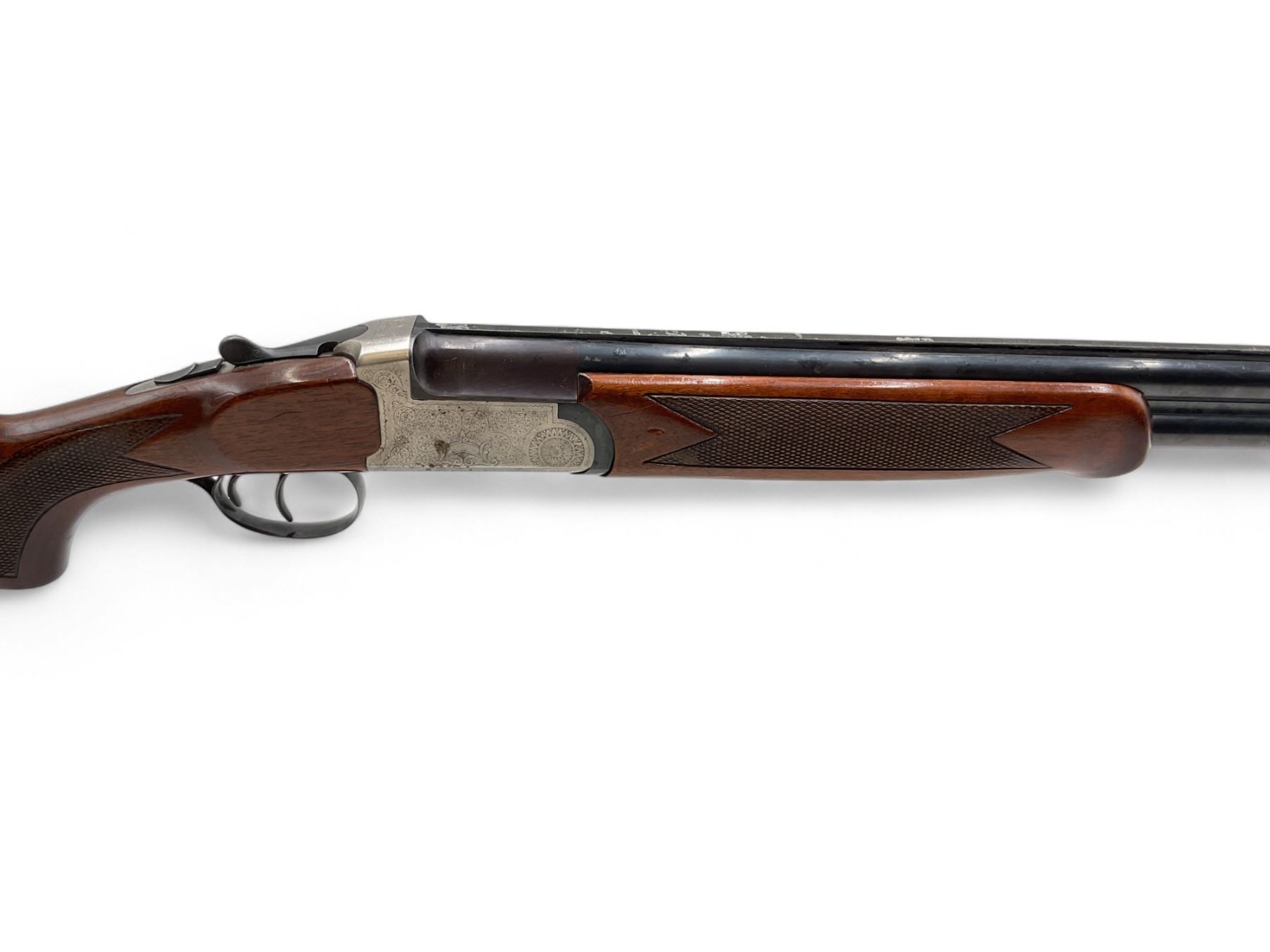 Maroccini Over Under Shotgun 12Ga 2.75" Chambers 28" Barrels Wood Stock. Vent rib is bulged near front and missing bead sight. Fixed chokes; double triggers. Rear stock has been extended and has custom butt pad. This is a non-restricted firearm.