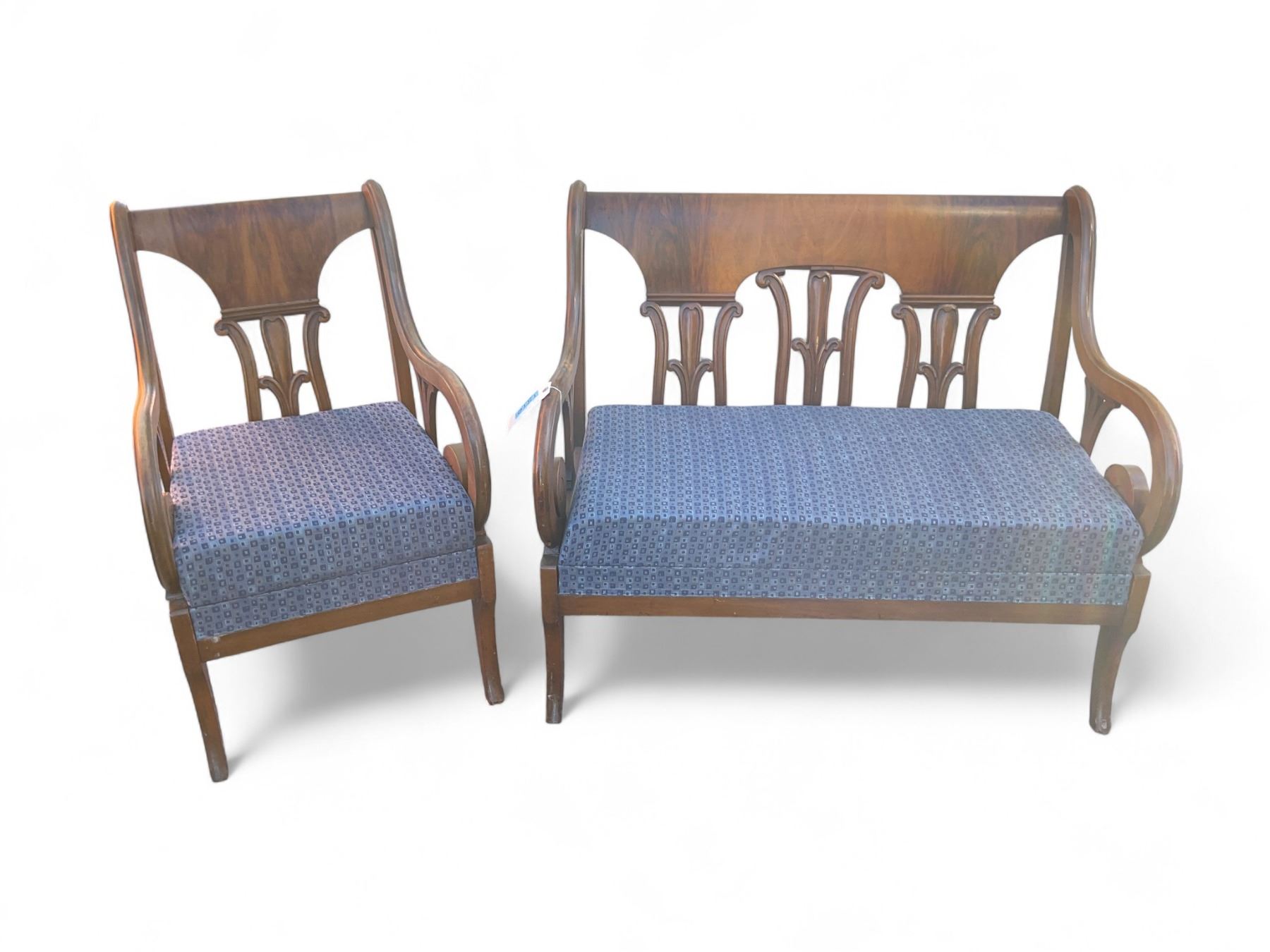 Matching Chair and Settee, Wood and Material