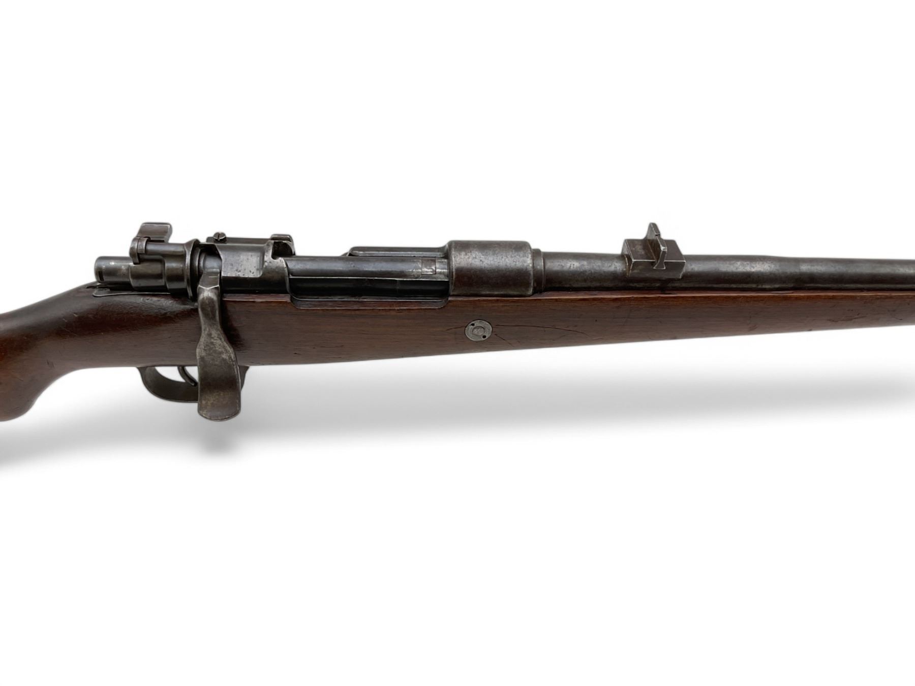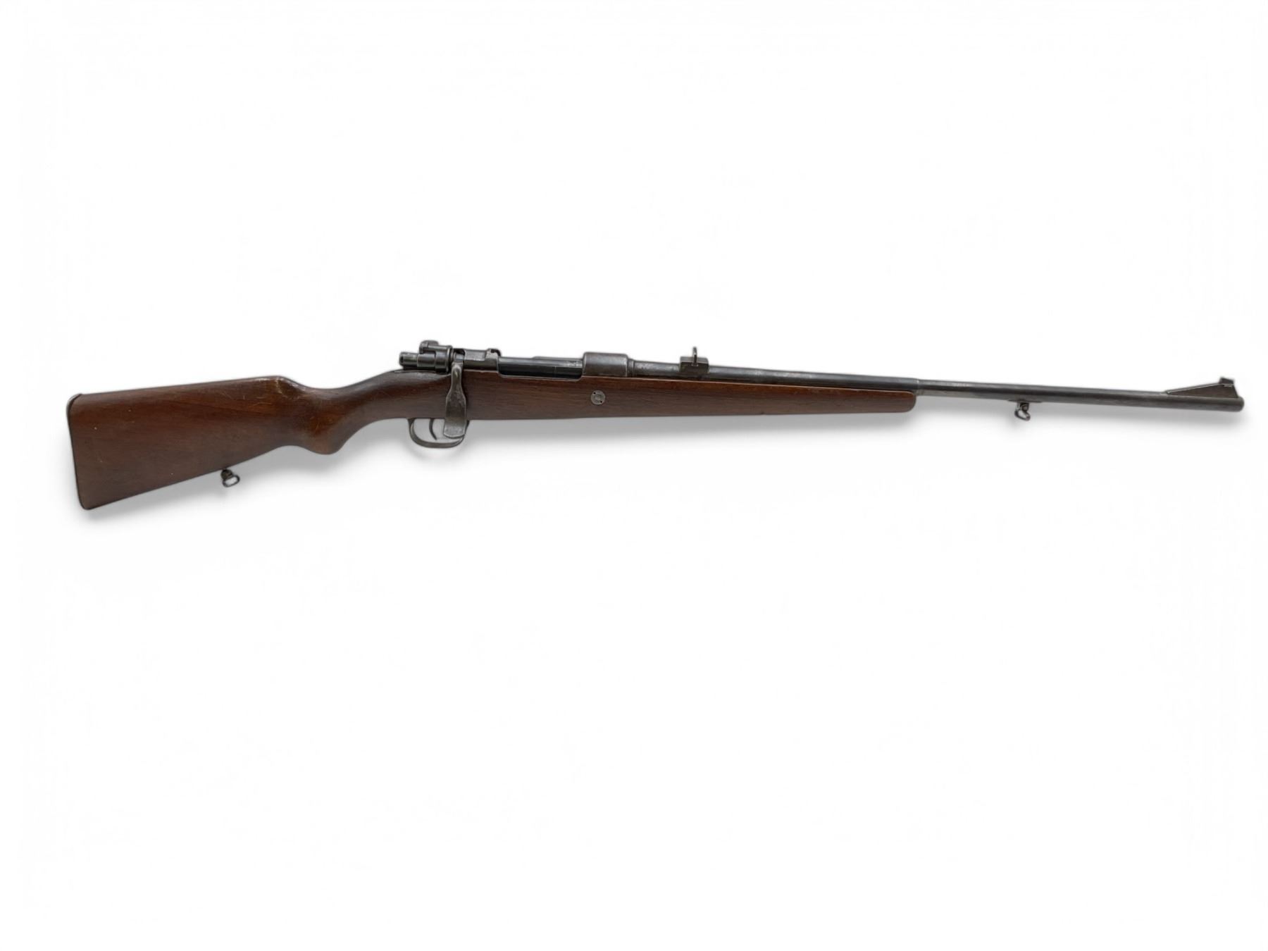 Mauser M98 Bolt Action Rifle 9.3X62 24" Barrel Wood Stock. Fixed front and rear sights. Internal magazine with base plate. Custom bolt handle. This is a non-restricted firearm.