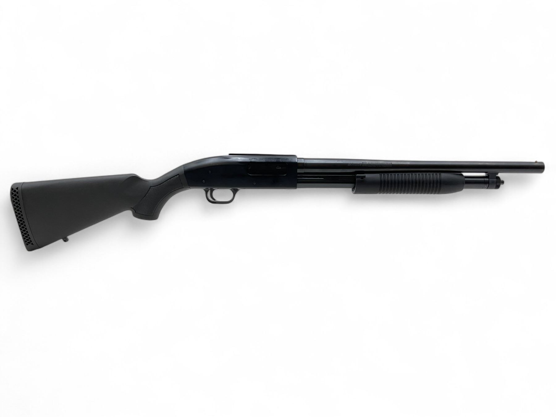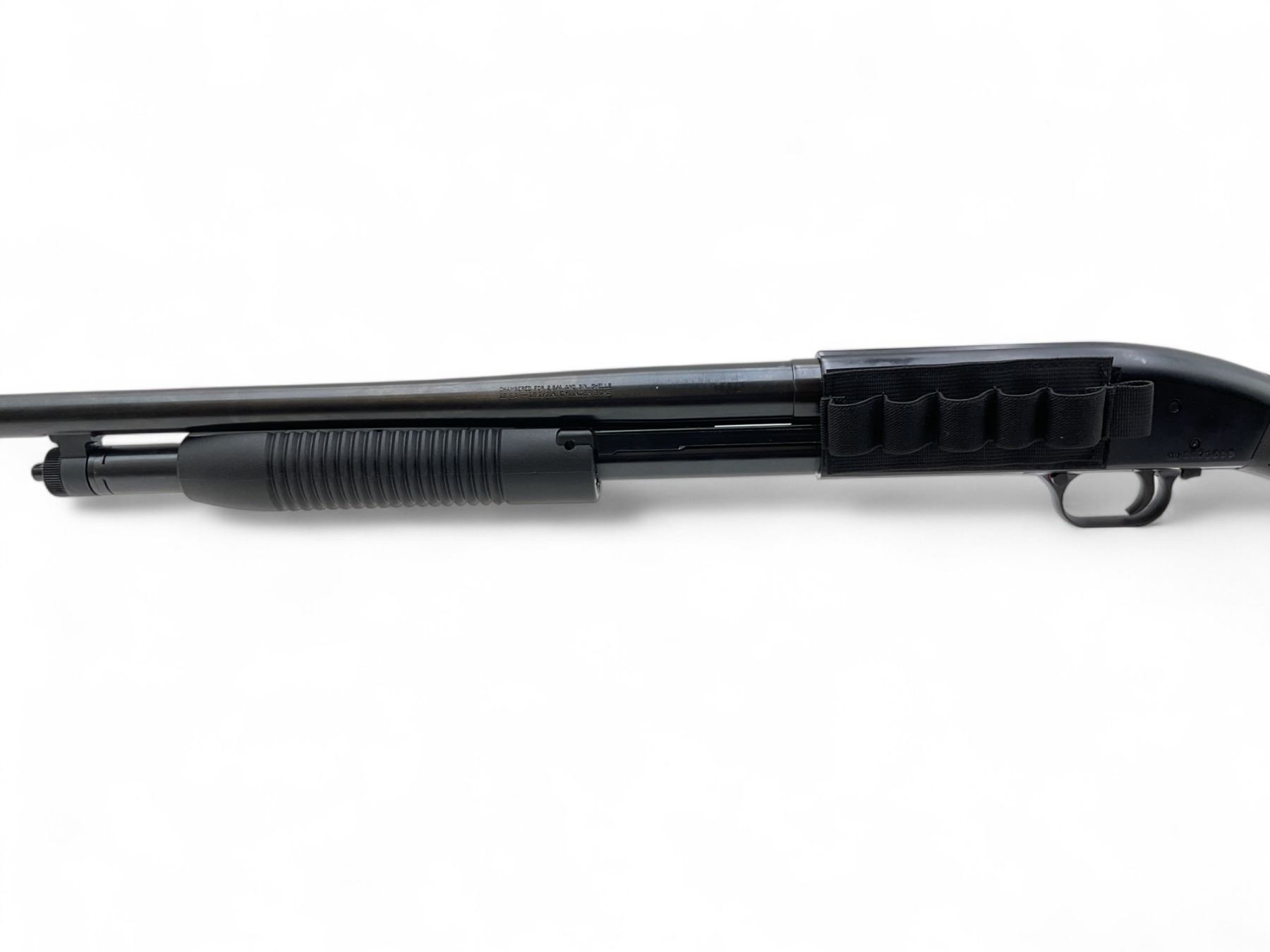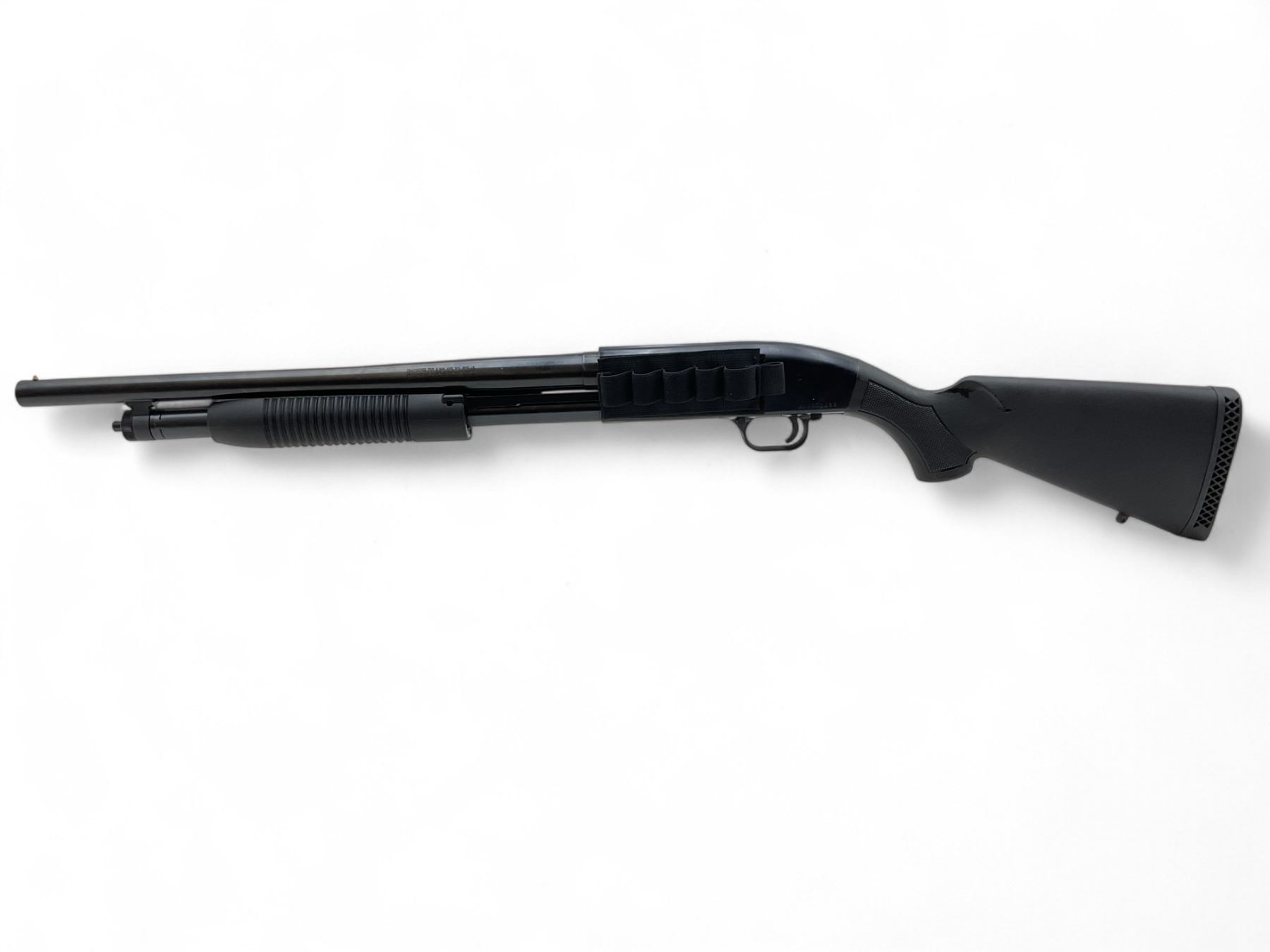 Maverick Model 88 Pump Action Shotgun 12Ga 3" Chamber 18.5" Barrel Black Synthetic Stock. Bead sight, fixed choke. Velcro shell holder. This is a non-restricted firearm.
