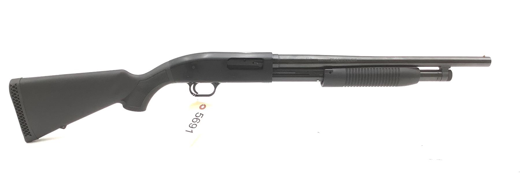 Maverick Model 88 Pump Action Shotgun 12Ga 3" Chamber 18.5" Barrel Synthetic Stock, Display Model. Rubber butt pad, bead sight. Display model; gun only, no box. This is a non-restricted firearm.