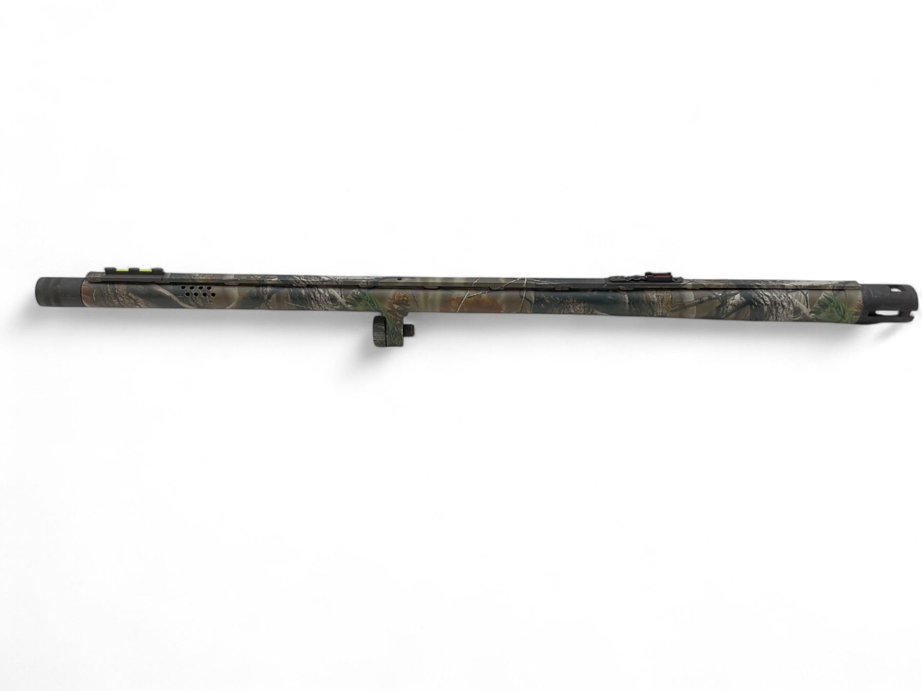 Mossberg 500 24" Vent Rib Turkey Barrel Ported 12Ga 3" Chamber Camo. Fiber optic sight; comes with a removable extended choke.