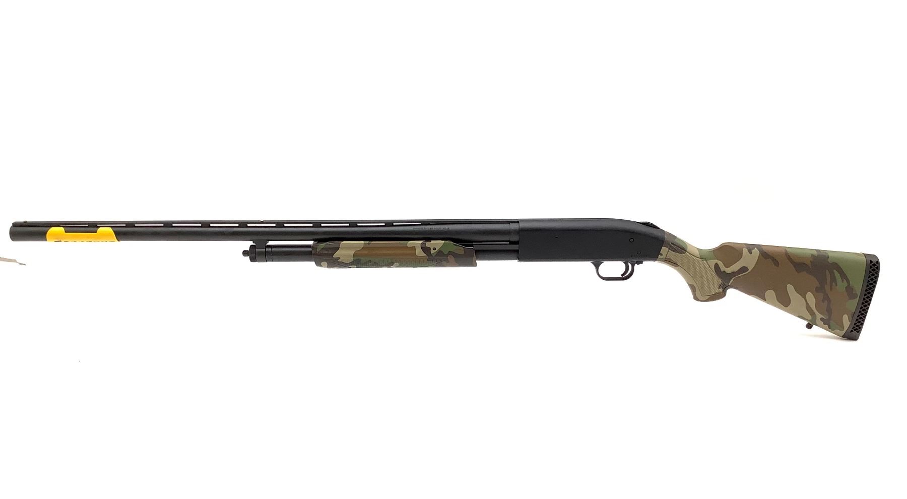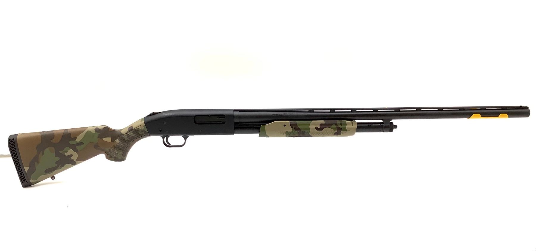 Mossberg 500 Field 12Ga Pump Action Shotgun 3" Chamber 28" Barrel Woodland Camo, New. Vent rib barrel with dual bead sights. Includes interchangeable chokes. This is a non-restricted firearm.