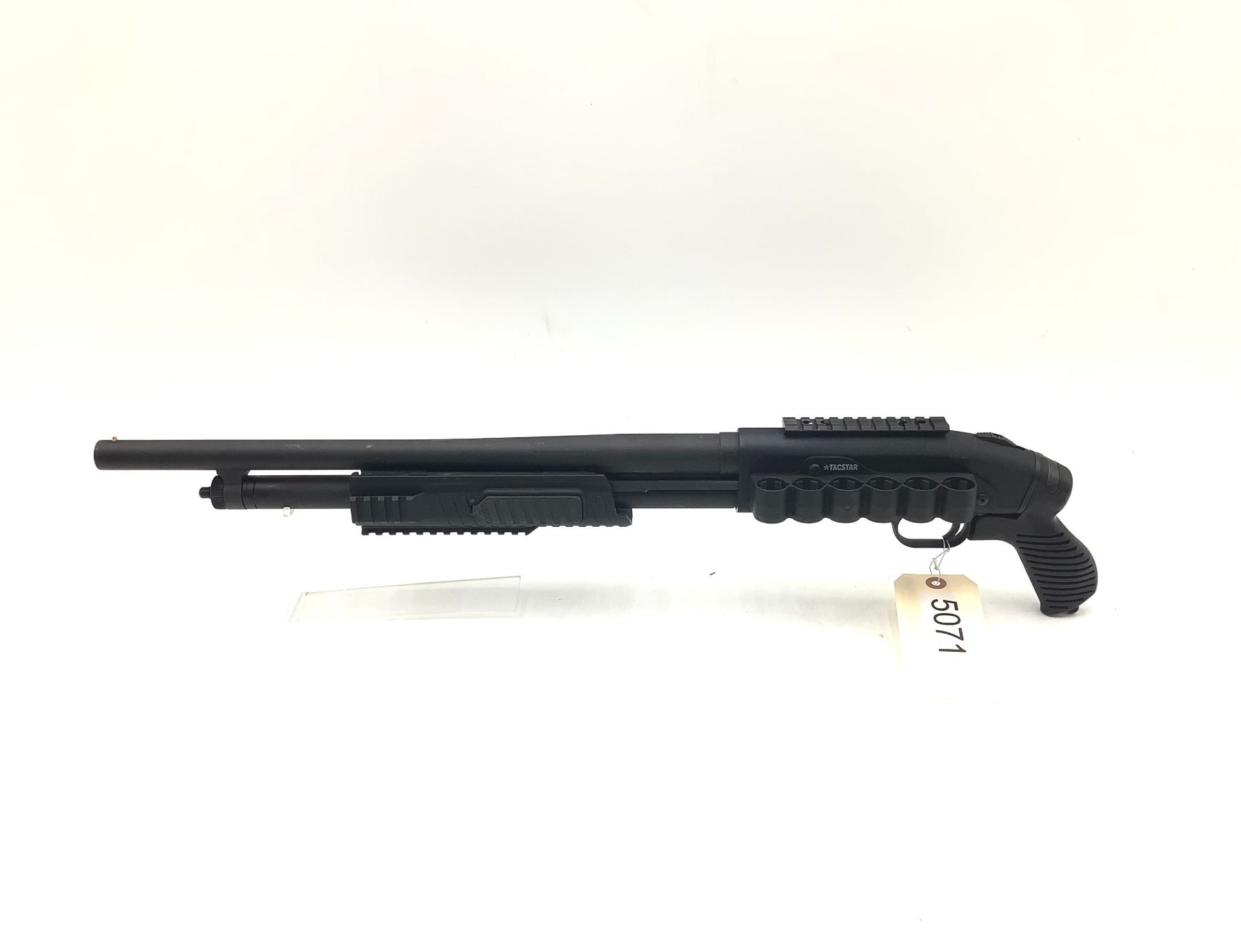 Mossberg 500 Flex Tactical Pump Action 12Ga Shotgun 18.5" Barrel Black Pistol Grip With Back Pack. 3" Chamber. Includes 6 round sidesaddle, bead sight and sling mounts. Front forend has rails to mount accessories. This is a non-restricted firearm.