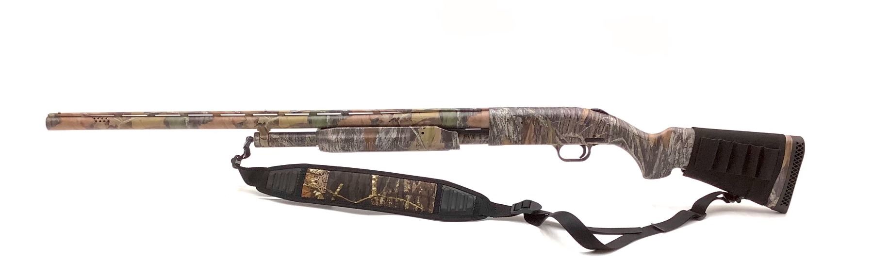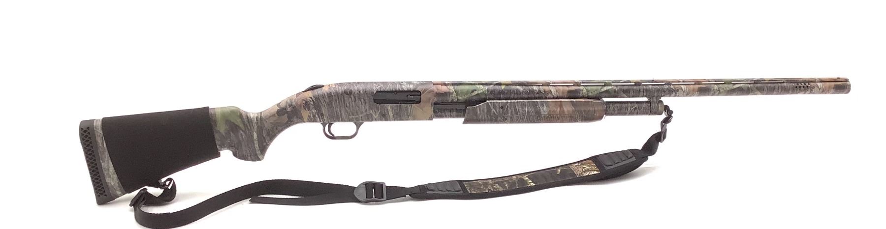 Mossberg 500 Pump Action 12 Ga Shotgun 3" Chamber 28" Barrel Camo Finish. Vent rib with bead sights and ported barrel, receiver has been drilled and tapped. Includes sling and slip on shell holder. This is a non-restricted firearm.
