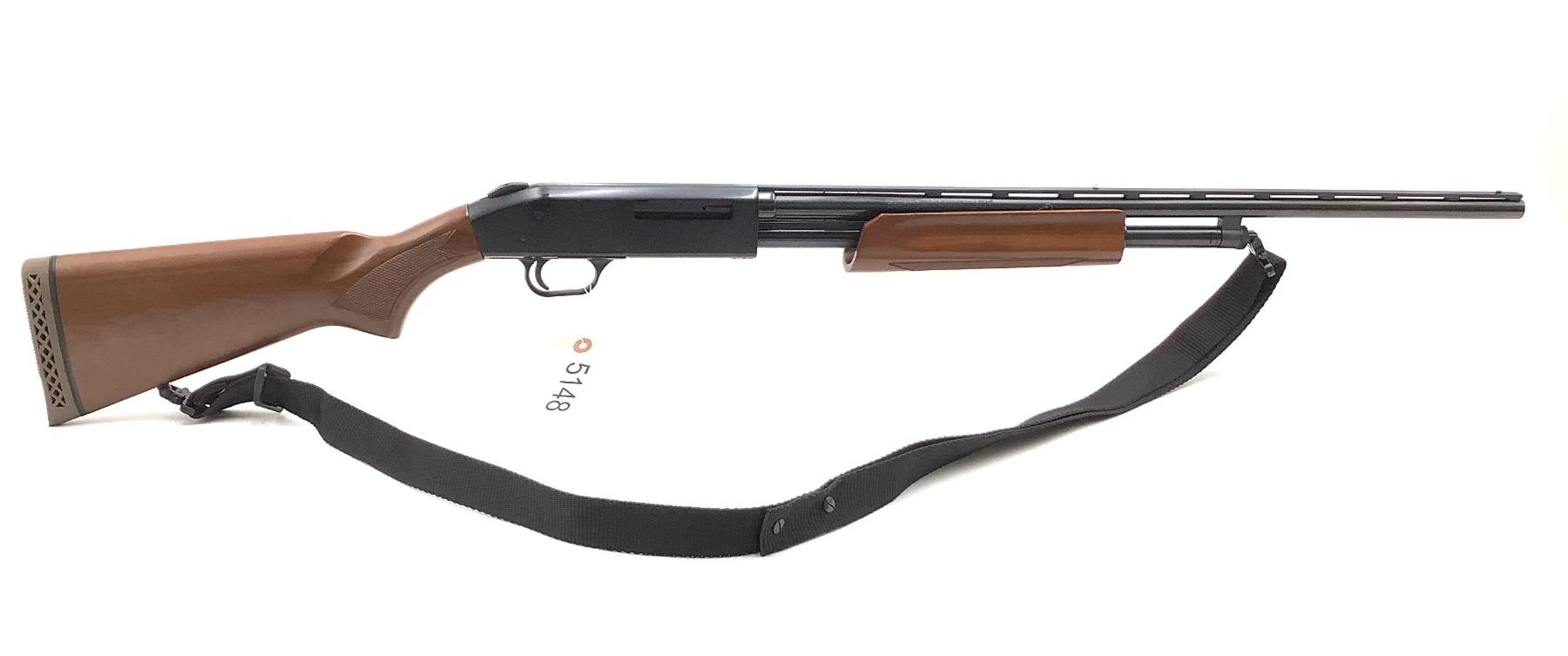 Mossberg 500 Pump Action 410 Shotgun 3" Chamber 24" Vent Rib Barrel Wood Stock. White front bead sight, brass mid bead. Rubber butt pad; fixed choke. Includes sling mounts with sling. This is a non-restricted firearm.