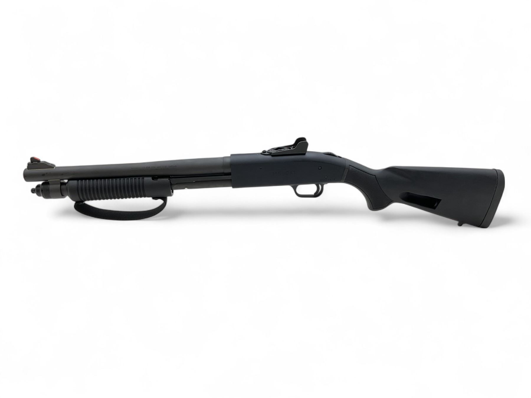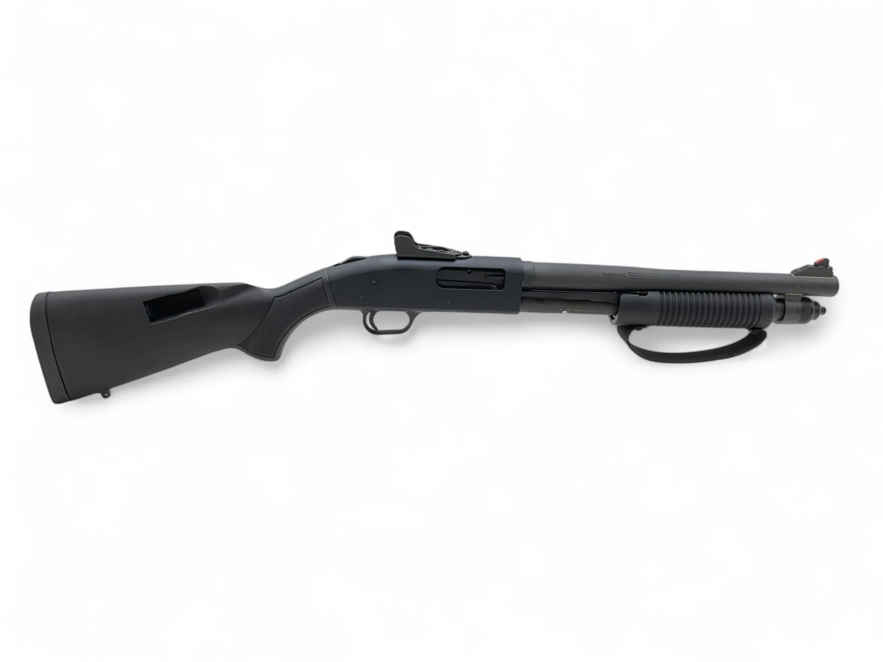 Mossberg 590A1 Compact Pump Action Shotgun 12ga 3" Chamber 14" Barrel Black Synthetic Stock, New. Fixed choke. Fixed front sight, adjustable rear sight. Speed feed stock; hand strap on forend. This is a non-restricted firearm.