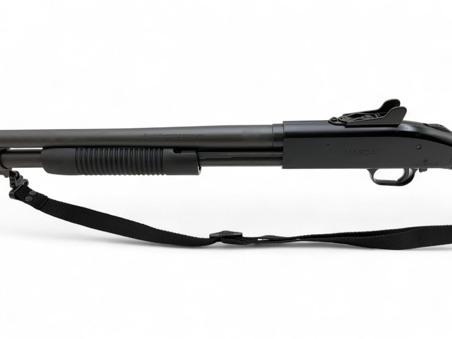 Mossberg 590A1 Pump Action Shotgun 12ga 3" Chamber 21" Barrel Black Synthetic Stock. Fixed choke; SpeedFeed stock. Fixed front sight, adjustable rear sight. After market magazine follower; includes sling. This is a non-restricted firearm.