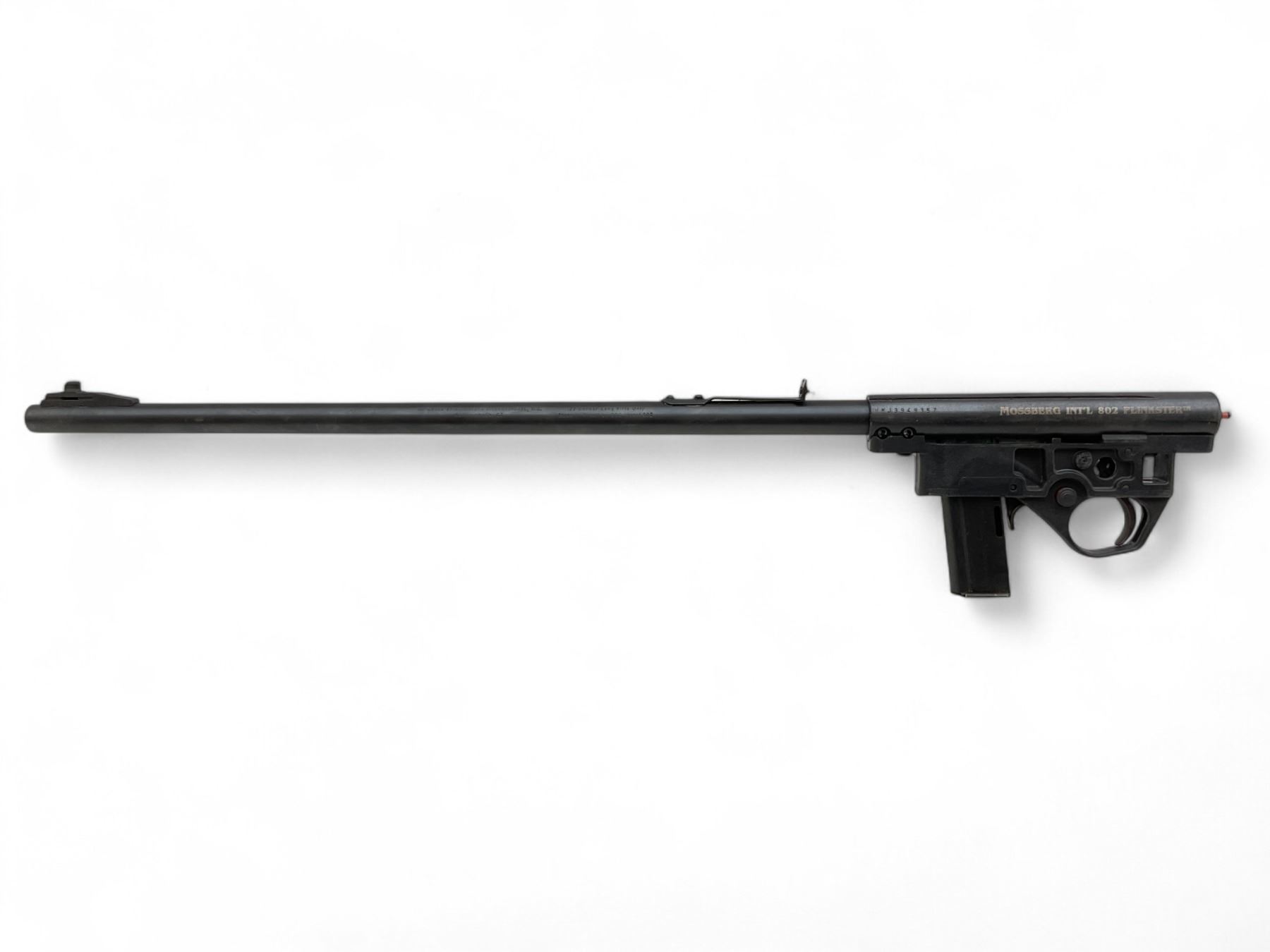 Mossberg 802 Plinkster Bolt Action Rifle 22 LR 18" Barrel No Stock. Comes with one detachable magazine. Fixed front sight; rear sight elevator missing. No stock present; may be missing other parts. This is a non-restricted firearm.