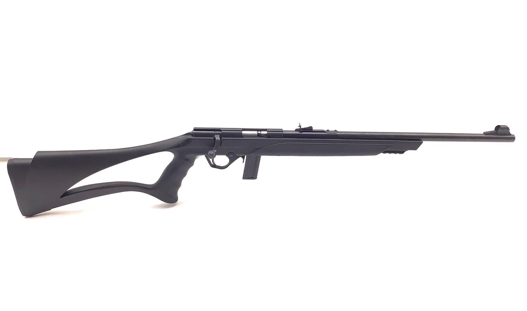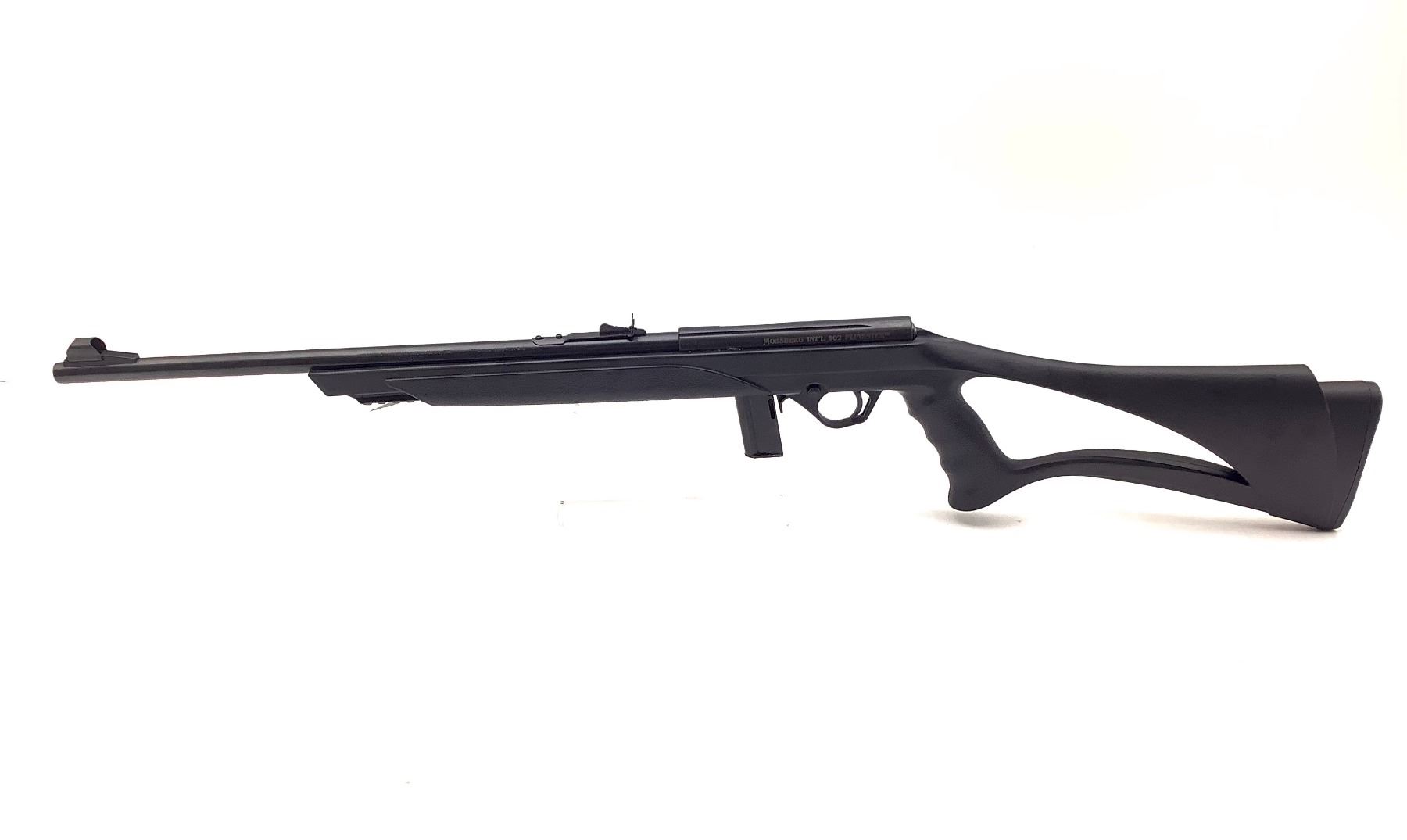 Mossberg 802 Plinkster Bolt Action Rifle .22LR 18" Barrel Synthetic Stock, New. Detachable magazine, open sights. The stock was originally pink; it has been painted black. This is a non-restricted firearm.