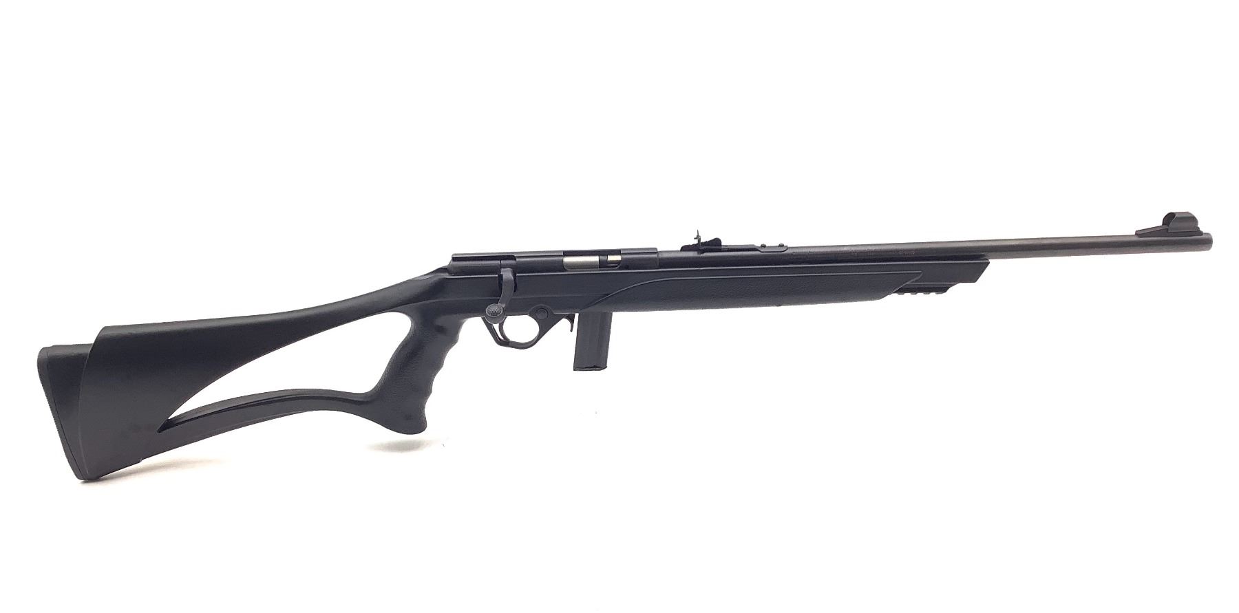 Mossberg 802 Plinkster Bolt Action Rifle .22LR 18" Barrel Synthetic Stock, New. Detachable magazine, open sights. The stock was originally pink; it has been painted black. This is a non-restricted firearm.