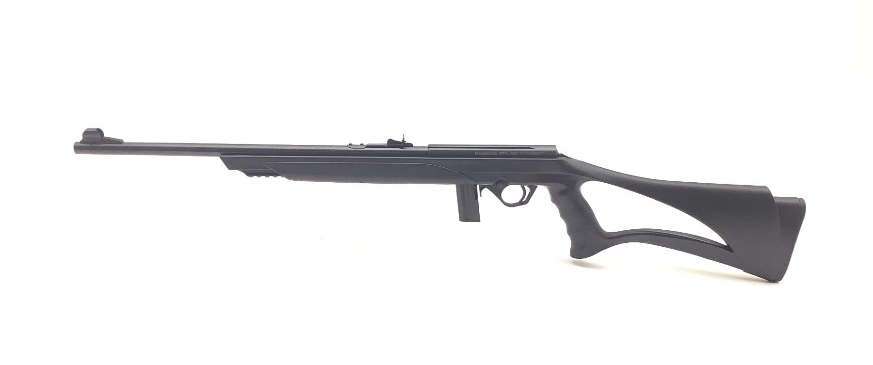 Mossberg 802 Plinkster Bolt Action Rifle .22LR 18" Barrel Synthetic Stock, New. Detachable magazine, open sights. The stock was originally pink; it has been painted black. This is a non-restricted firearm.