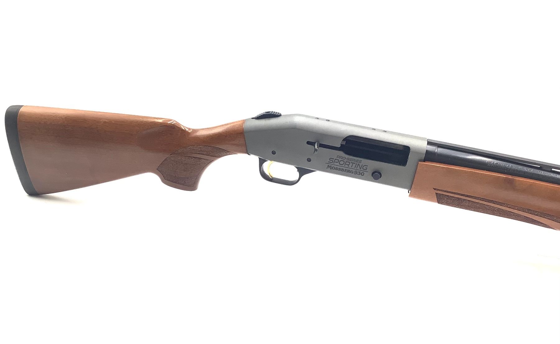 Mossberg 930 Sporting Semi Auto Shotgun 12Ga 3" Chamber 28" Ported Vent Rib Barrel Wood Stock. Silver colored receiver, includes interchangeable chokes. Fiber optic front sight, rubber butt pad. Receiver is drilled and tapped. This is a non-restricted firearm.