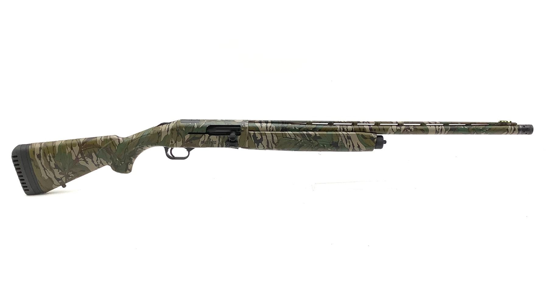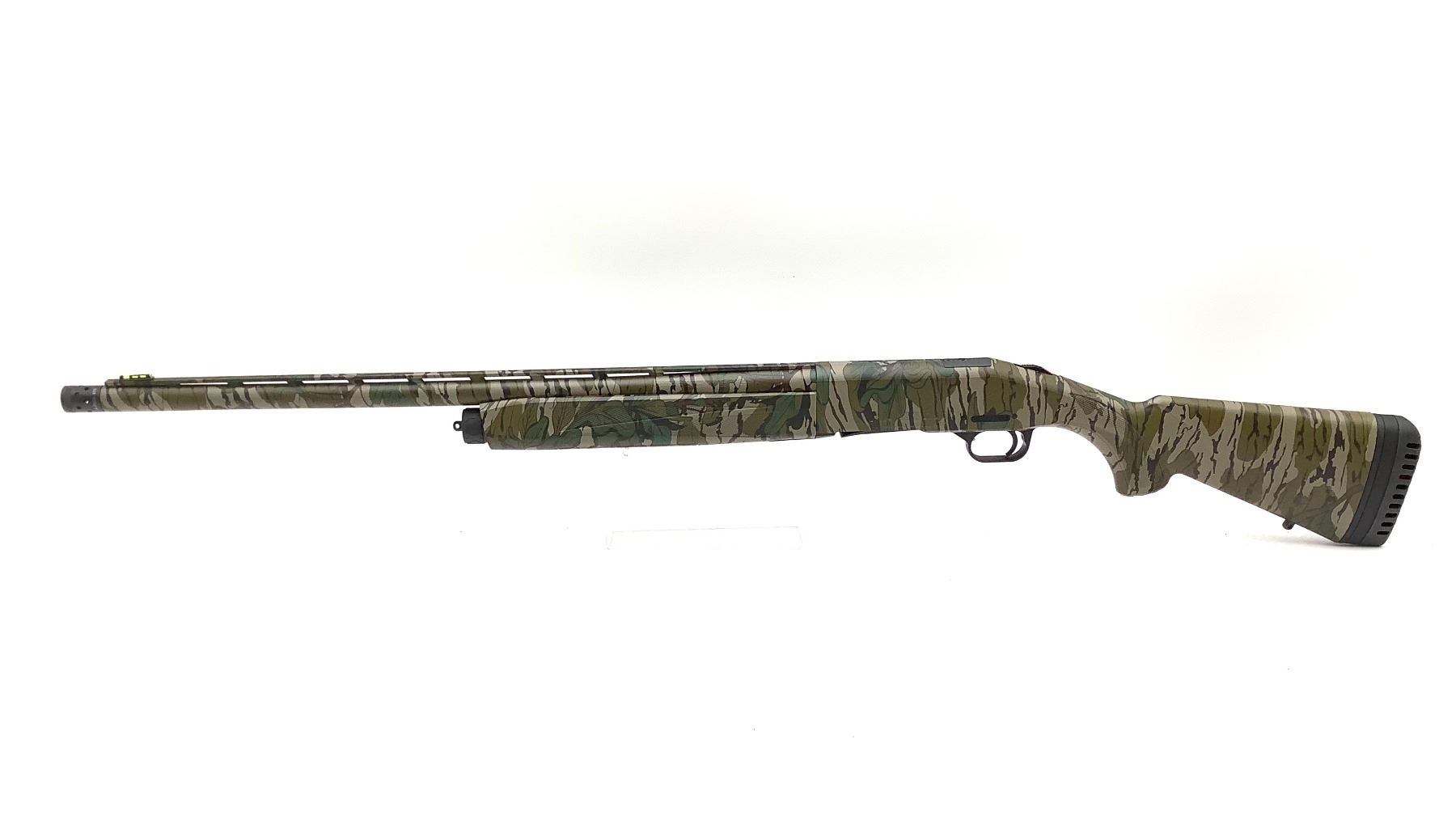 Mossberg 940 Pro Turkey Semi Auto 12Ga Shotgun 3" Chamber 24" Barrel Mossy Oak Greenleaf Camo, Demo Model. Vent rib, fiber optic front sight. Includes removable extended Turkey choke. Receiver drilled and tapped and has cutout for optic. This is a non-restricted firearm. This was a demo/display model we had on the shelf to show customers.