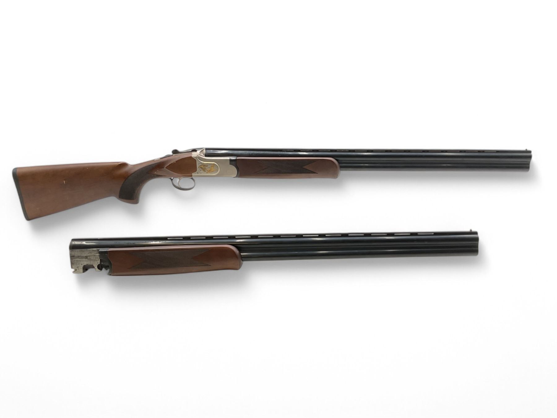 Mossberg International Ducks Unlimited Silver Reserve Over Under Shotgun 12Ga 3" Chambers 28" Barrels Wood Stock. Also Includes second set of Over Under Barrels in 20Ga 3" Chambers and 28" Barrels. Both sets of barrels have vent rib with bead sight; barrels each have one removable choke. Comes with a soft case. This is a non-restricted firearm.