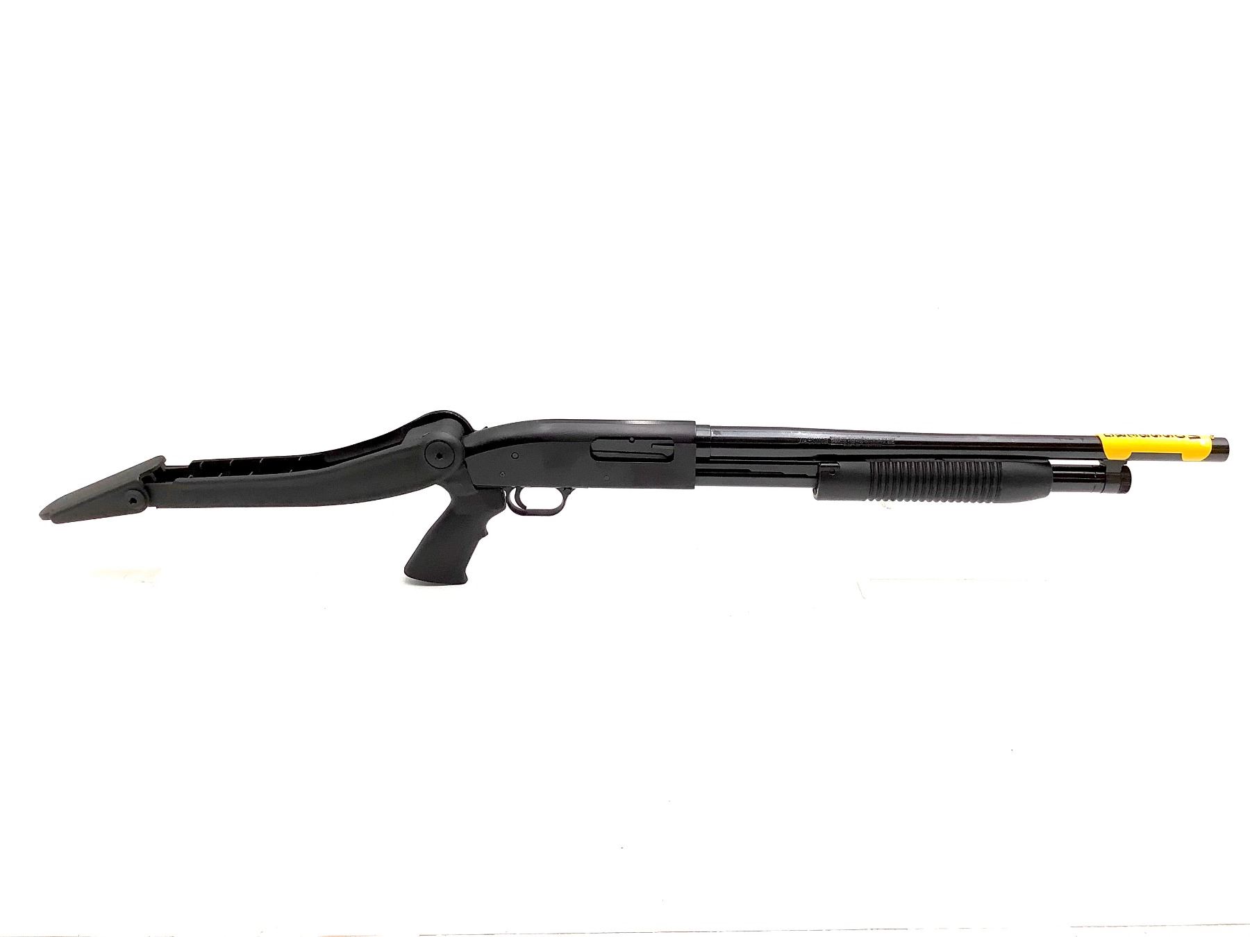 Mossberg Maverick 88 Pump Action Shotgun 12Ga 3" Chamber 18.5" Barrel Folding Stock, New. Bead sight, fixed choke. This is a non-restricted firearm.