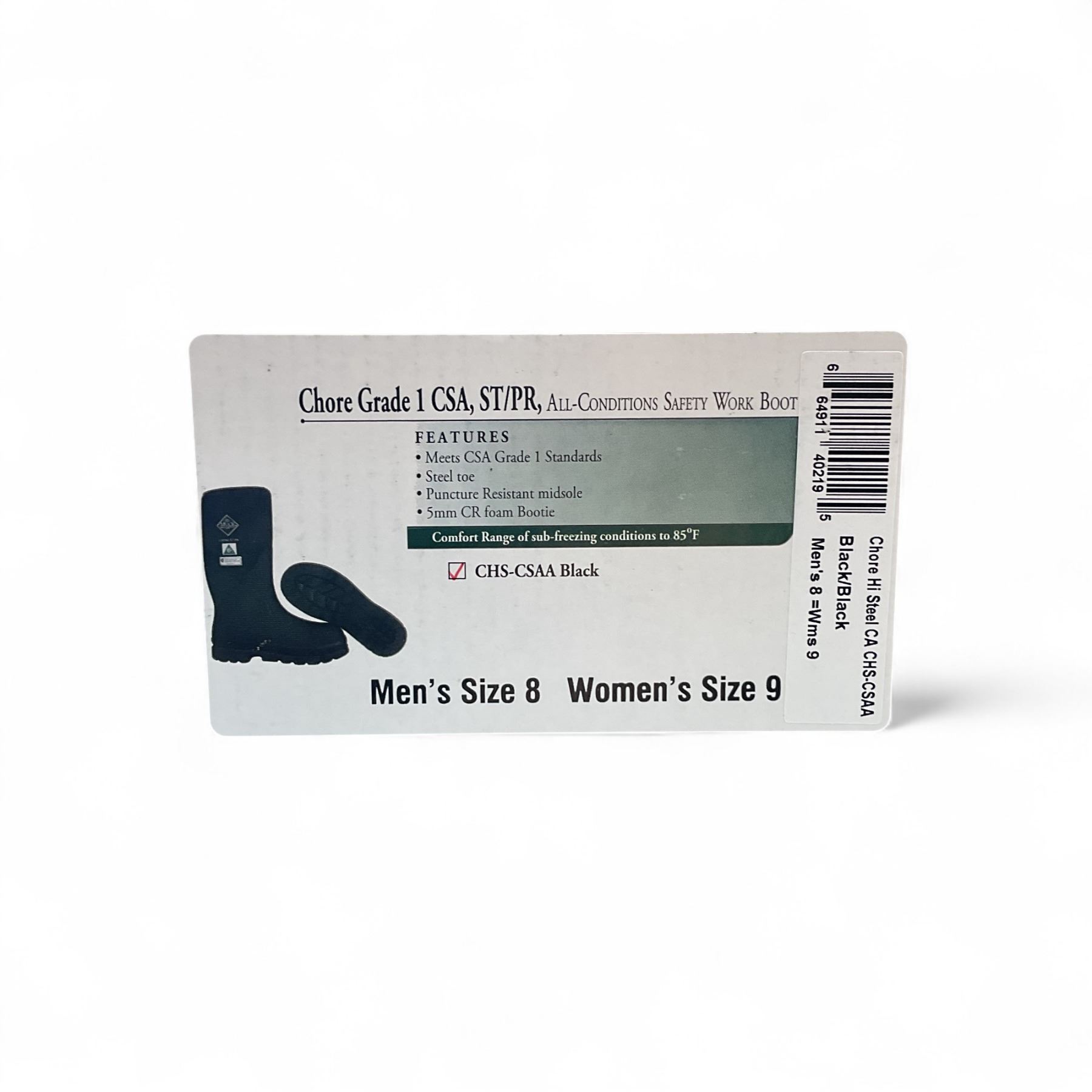 Muck Boots Chore Grade 1, CSA All Conditions Safety Work Boot, Men's Size: 8, Women's Size: 9, Black