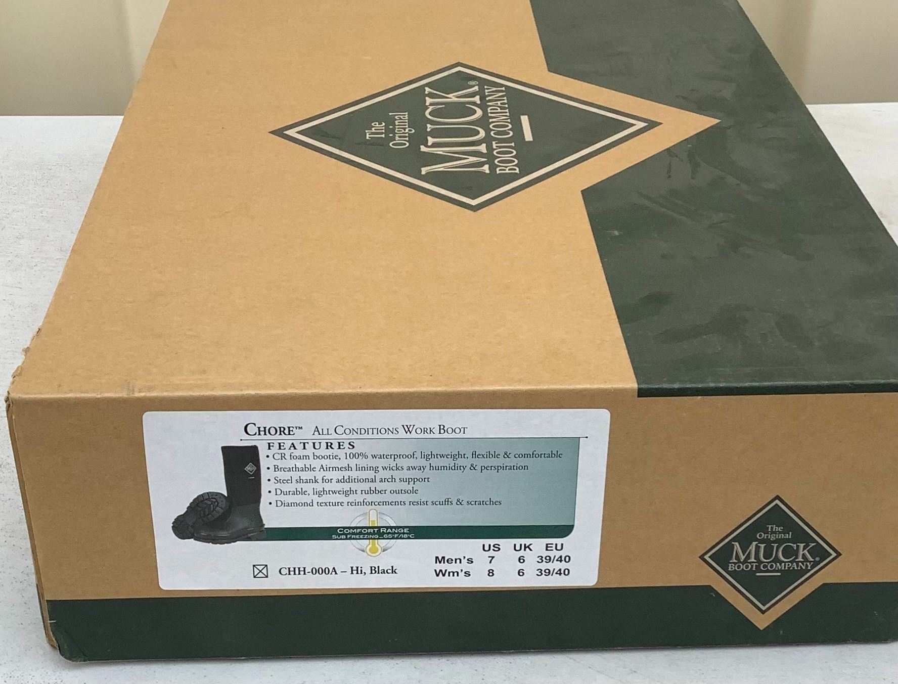 Muck Chore Workboots Hi, Men's Size 7, Women's Size 8, Black
