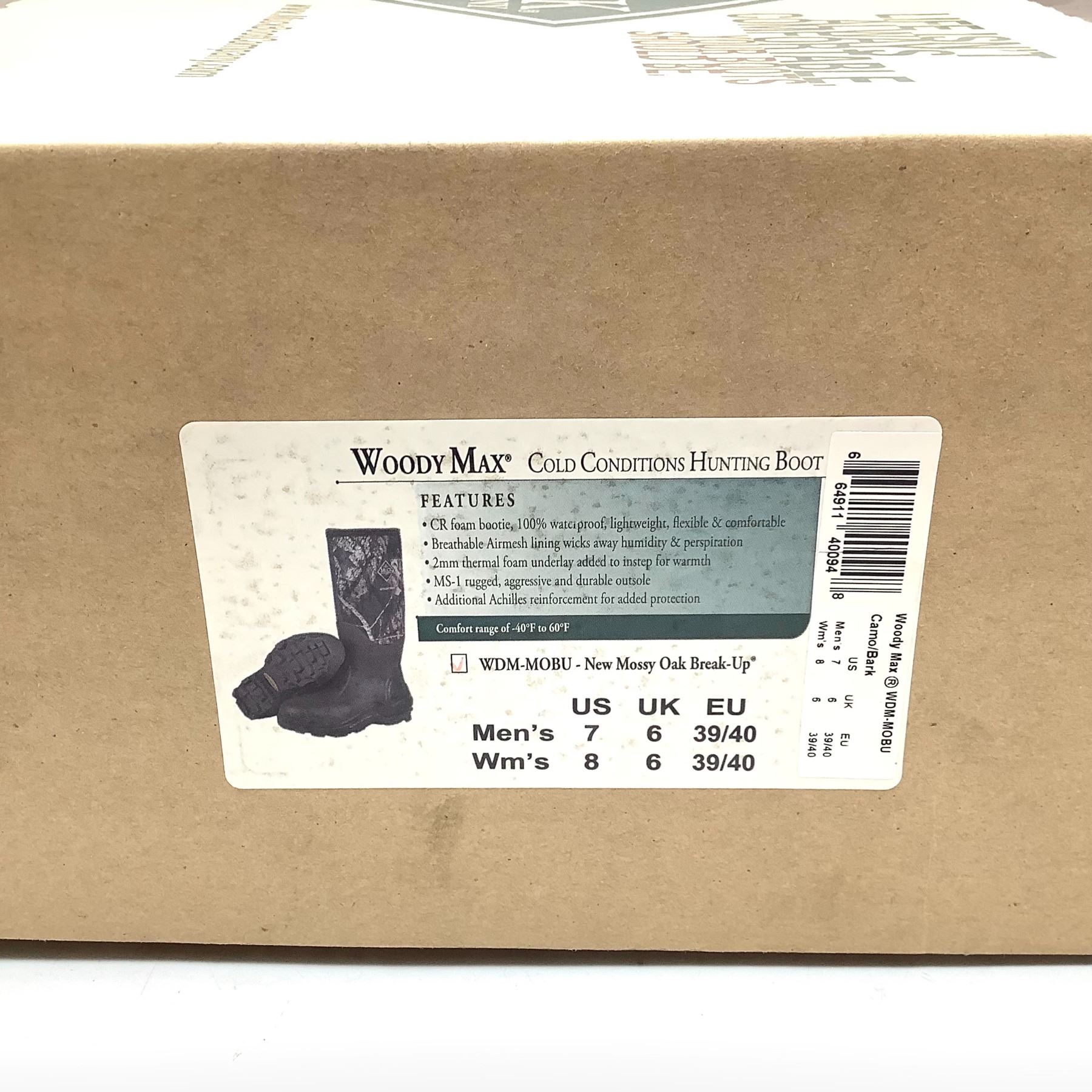 Muck Woody Max Cold Conditions Hunting Boot, Men's Size 7, Women's Size 8 in Mossy Oak Break Up, New