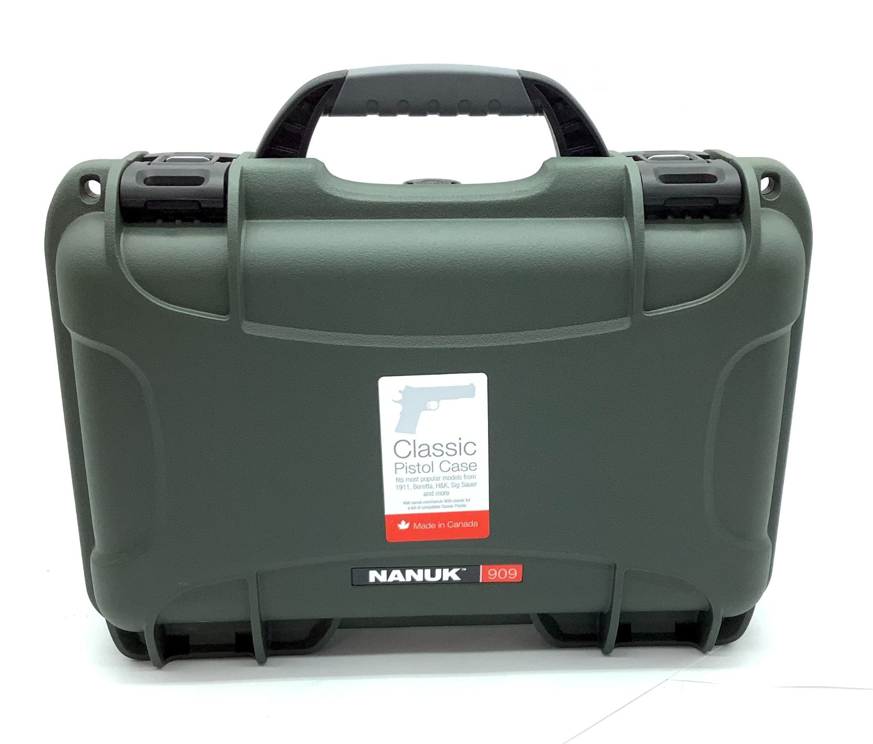 Nanuk 909 Foam Lined Handgun Case, 12.6" X 9" X 4.3", Olive, New