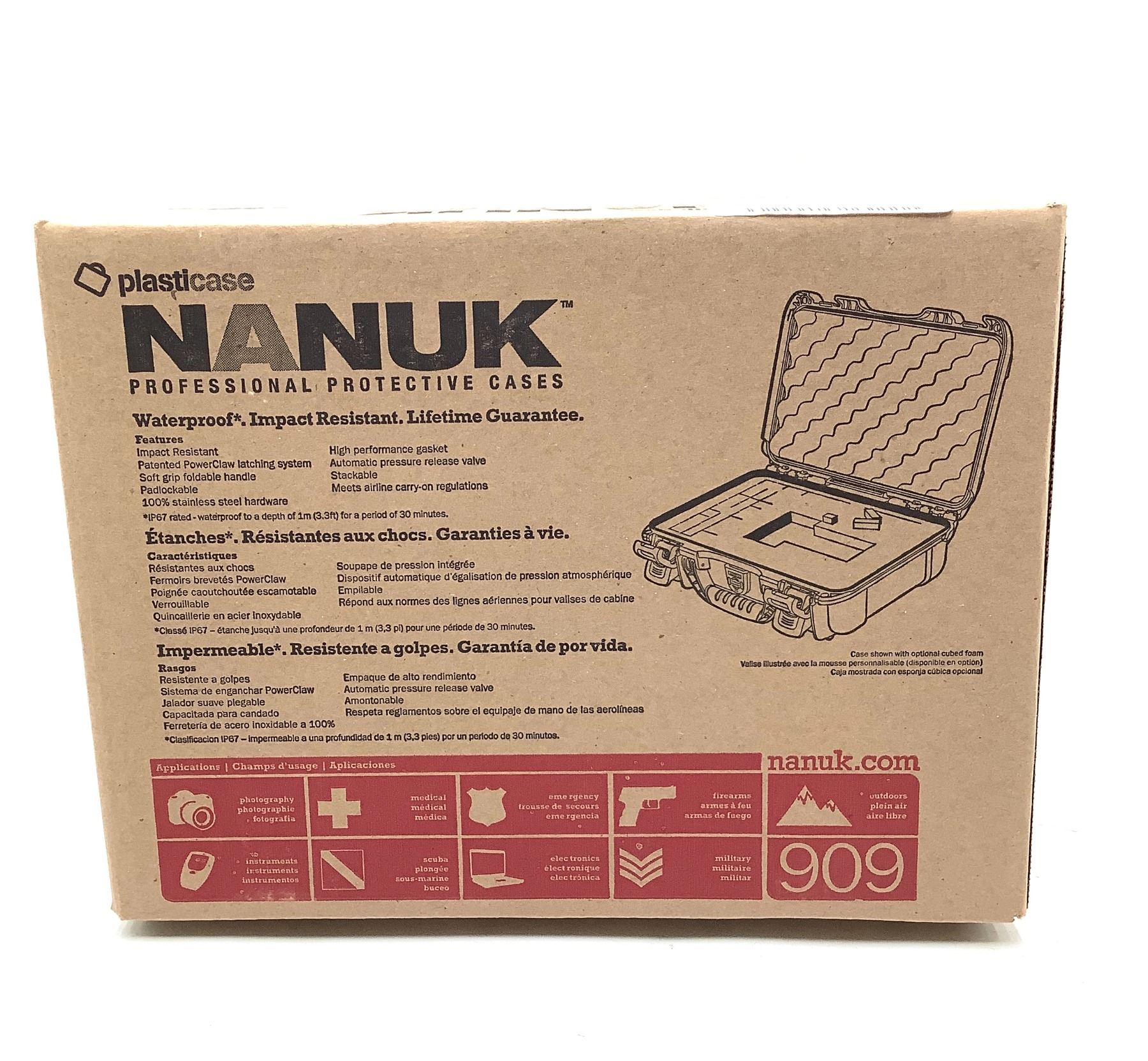 Nanuk 909 Foam Lined Pistol Case, 12.6" X 9" X 4.4", Yellow, New