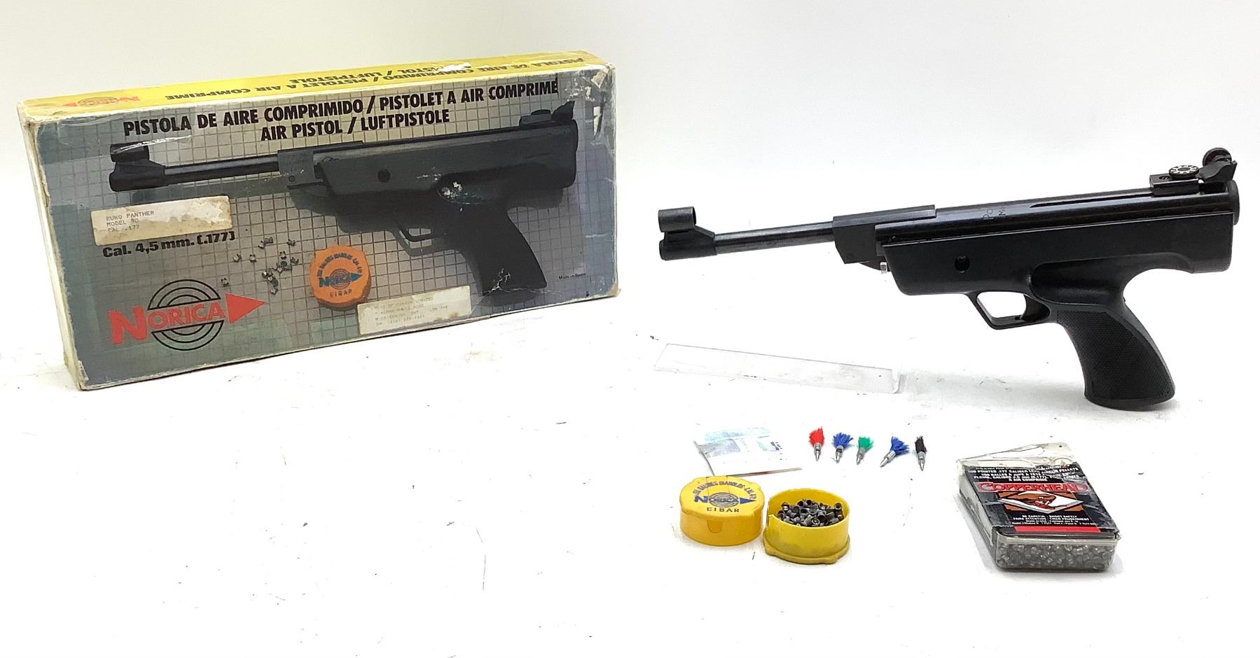 Norica Ruko Panther Model 90 Break Action Single Shot .177 Pellet Air Pistol. Includes pellets. You must be over 18 years of age to purchase this item.