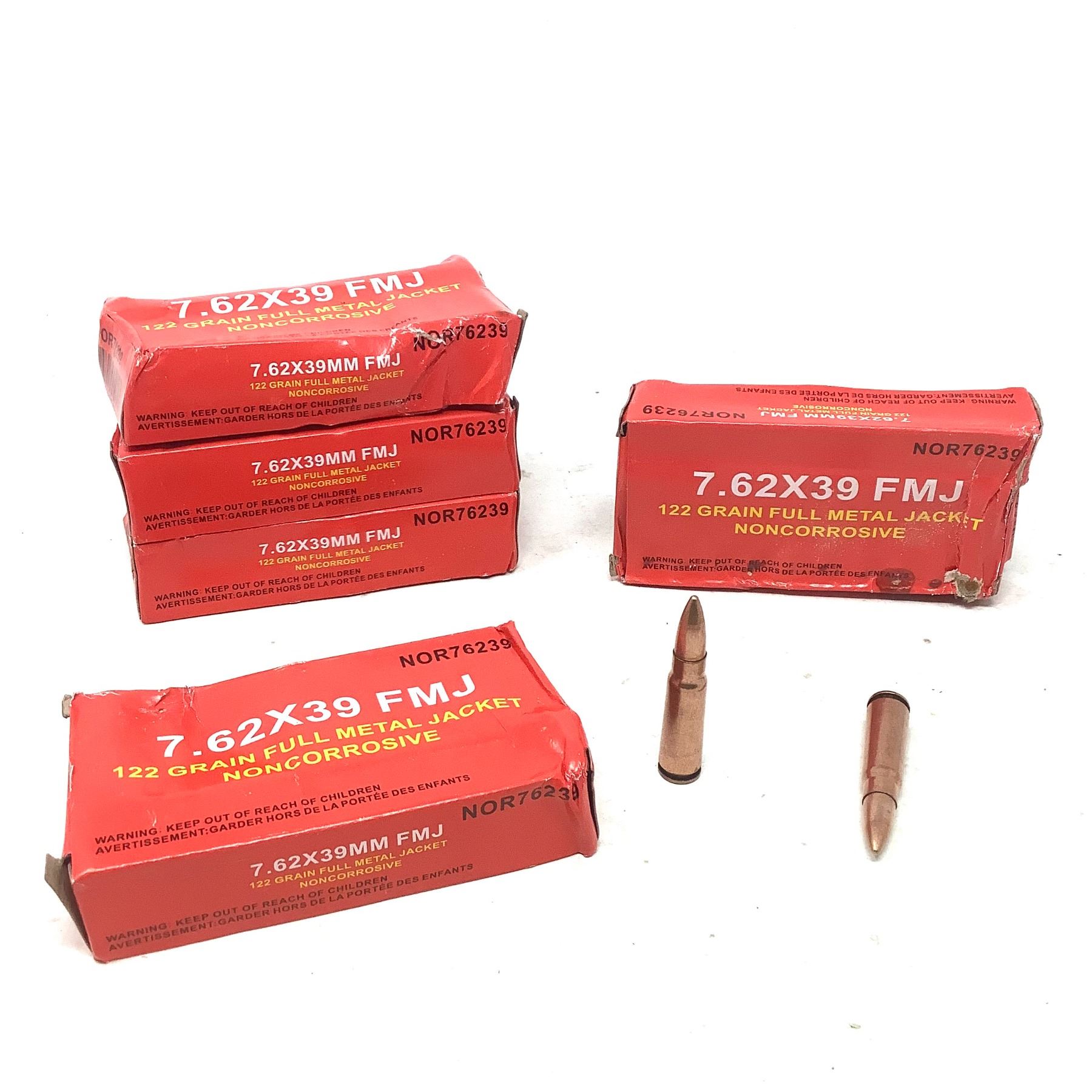 Norinco 7.62 X 39 mm 122 Grain Non Corrosive FMJ Ammunition, 100 Rounds