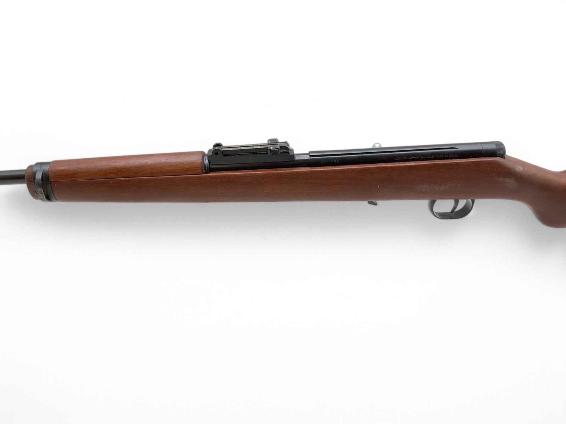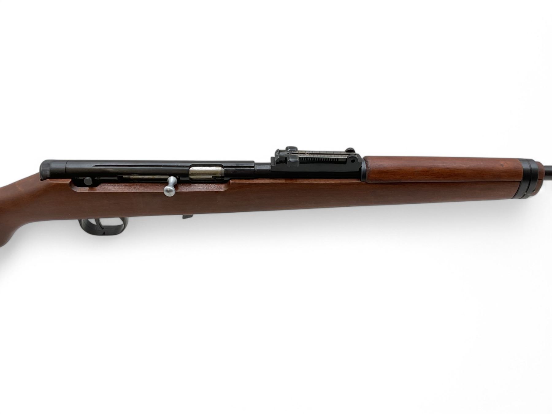Norinco JW-14 Semi Auto Rifle 22LR 21" Barrel Wood Stock. No magazine included. Fixed front sight, adjustable rear sight. Trigger and magazine well assembly is loose in stock. This is a non-restricted firearm.