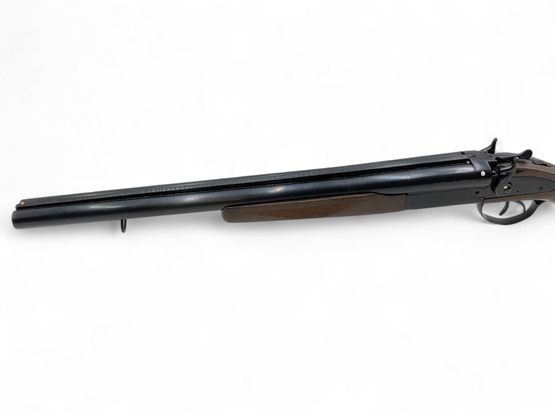 Norinco JW2000 Side By Side Shotgun 12Ga 2.75" Chambers 20" Barrels Wood Stock. Bead sight; fixed chokes. Exposed hammers; double triggers. This is a non-restricted firearm.